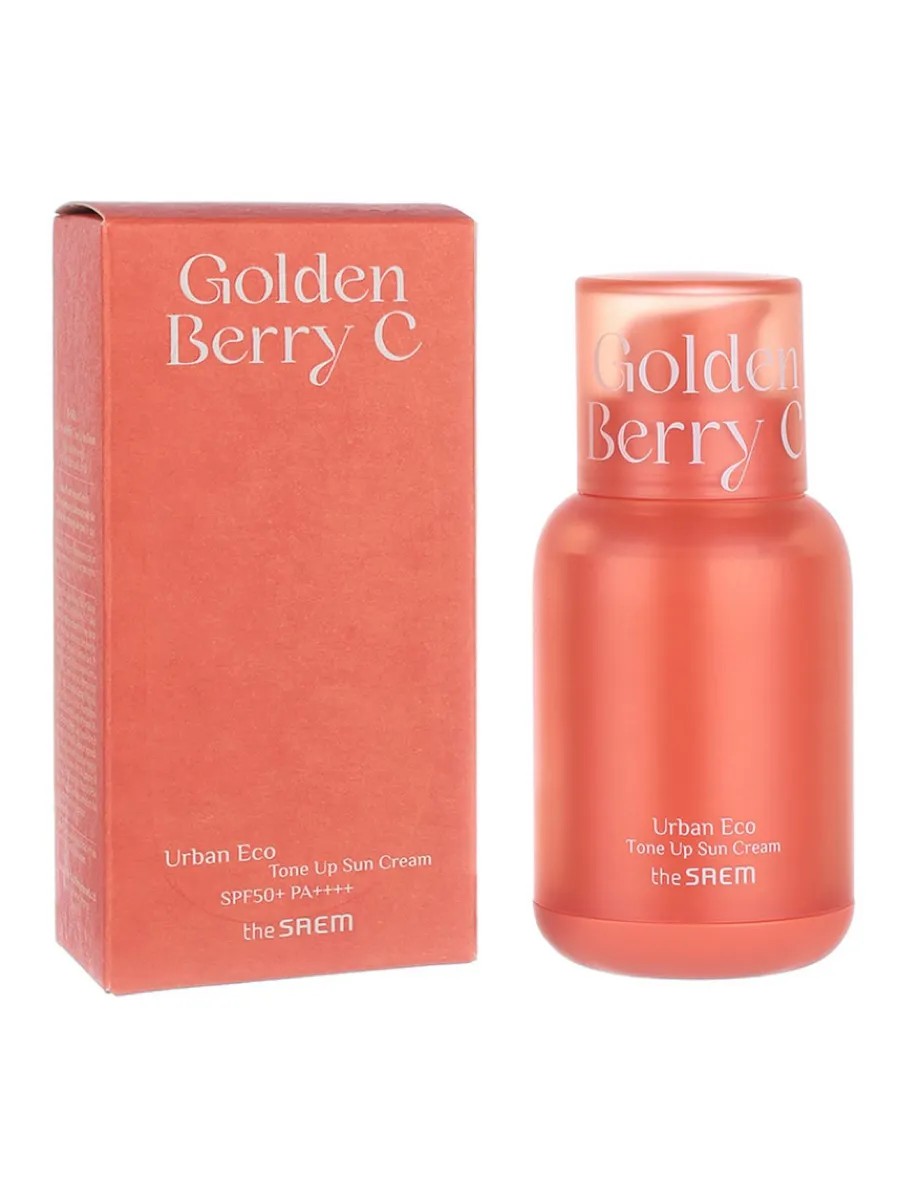 The Saem Sunscreen Facial Cream, 50 ml. This lightweight sunscreen from the brightening series combats wrinkles and pigmentation. It contains 80% golden Peruvian berry (physalis) extract. It uses a unique formula of microbubbles with vitamins that "dissolve" age spots and imperfections. Vegan. Ingredients: Water, Dibutyl Adipate, Titanium Dioxide, Propanediol, Caprylic/Capric Triglyceride, C12-15 Alkyl Benzoate, Diethylamino Hydroxybenzoyl Hexyl Benzoate, Ethylhexyl Triazone, Niacinamide, Diethylhexyl Butamido Triazone, 1,2-Hexanediol, Pentylene Glycol, Polyhydroxystearic Acid, Glycerin, Coco-Caprylate/Caprate, Vp/Eicosene Copolymer, Stearic Acid, Ammonium Polyacryloyldimethyl Taurate, Sodium Polyacryloyldimethyl Taurate, Alumina, Hydroxypropyl Methylcellulose Stearoxy Ether, Fragrance, Xanthan Gum, Ethylhexylglycerin, Triethoxycaprylylsilane, Aluminum Hydroxide, Adenosine, Sodium Polyacrylate, T-Butyl Alcohol, Sodium Hyaluronate, Physalis Peruviana Extract, Polyether-1, Pvm/Ma Copolymer, Allantoin, Tocopherol, Butylene Glycol, 3-O-Ethyl Ascorbic Acid, Ascorbyl Tetraisopalmitate, Caesalpinia Spinosa Gum, Juniperus Communis Fruit Extract, Madecassoside, Maltodextrin, Wine
