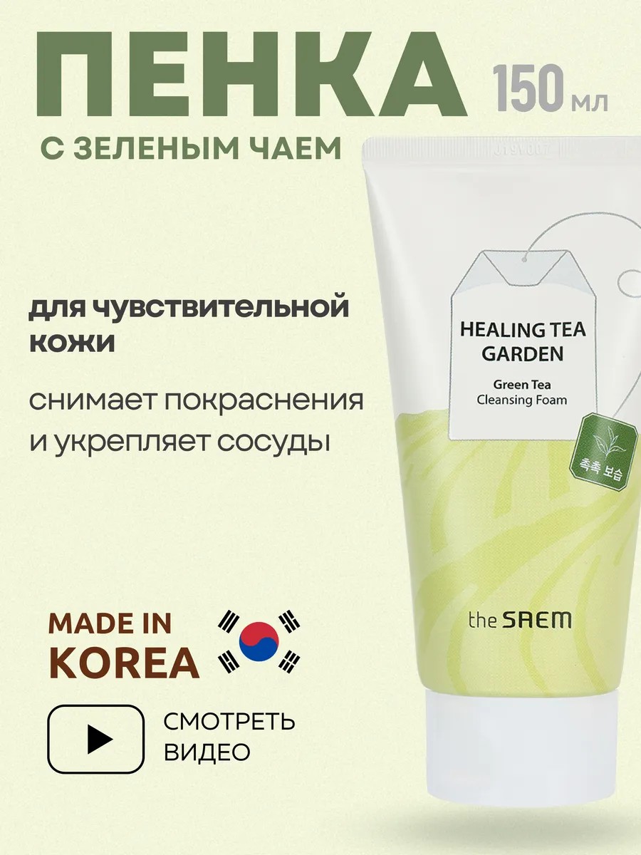 Очищающая пенка для лица с экстрактом зеленого чая для чувствительной кожи, оказывает увлажняющее и успокаивающее действие, очищает от черных точек и сужает поры, борется с бактериями, помогает при лечении прыщей и акне, омолаживает. Мягкая умывалка Healing Tea Garden Green Tea Cleansing Foam содержит растительные экстракты и кислоты, подходит для сухой, жирной и комбинированной мужской и женской кожи, также для подростков.