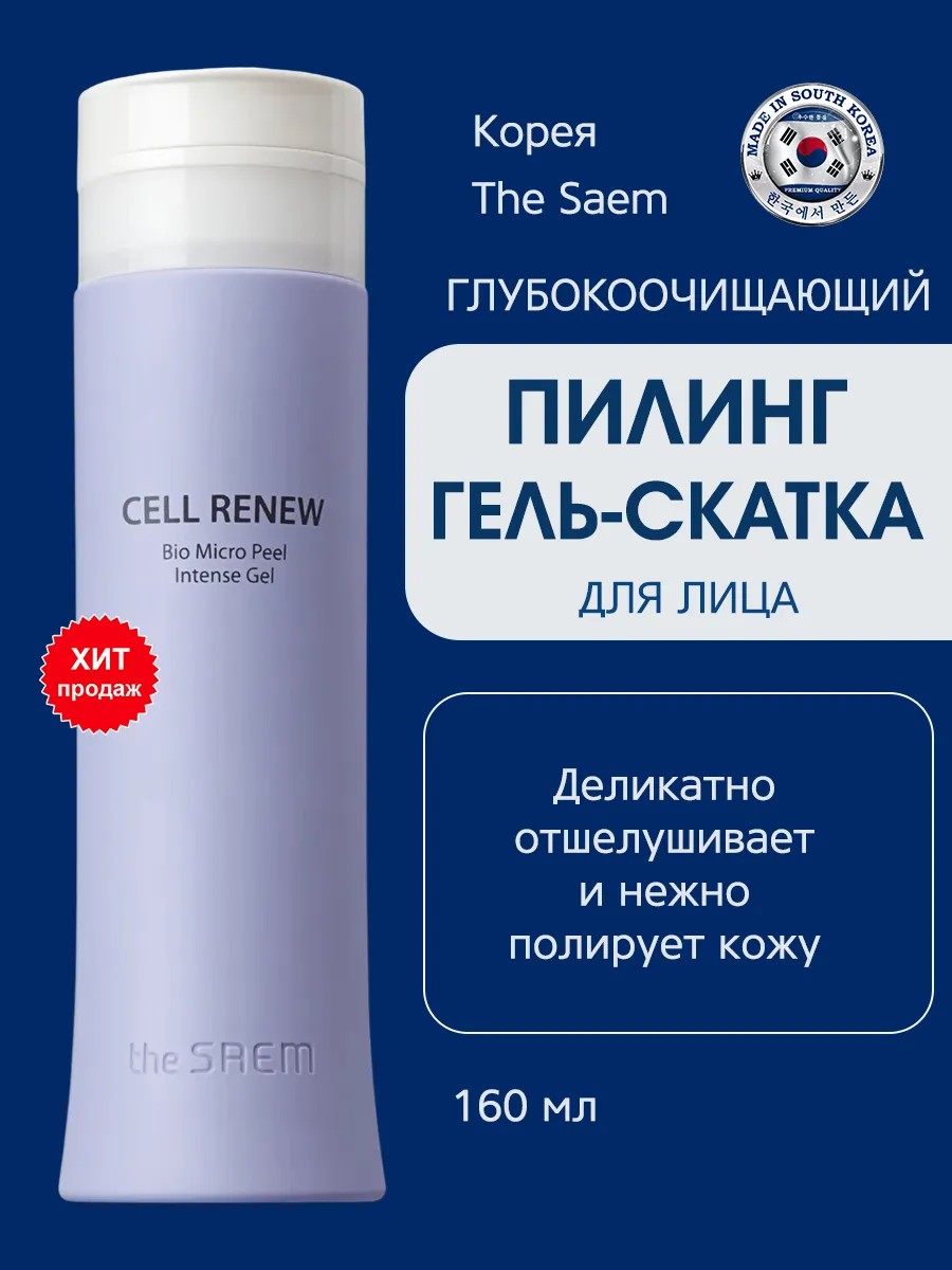 Интенсивный пилинг-гель, который удаляет ненужные омертвевшие клетки и загрязнения с помощью системы Smart Targeting Peeling System и заботится о гладкой и прозрачной коже. Гипоаллергенное средство, содержащий PHA, целлюлозу и бамбуковую пудру, бережно удаляет омертвевшие клетки и загрязнения и оставляет кожу гладкой и жизнеспособной. Применение: после очищения, на сухую кожу нанесите необходимое количество на все лицо, кроме области вокруг глаз и рта, и аккуратно помассируйте круговыми движениями. Через некоторое время, тщательно смойте теплой водой. Пилинг скатку для лица и тела можно использовать в качестве пенки для умывания или средства от черных точек. Cell Renew Bio Micro Peel Soft Gel корейского бренда The Saem, содержит PHA-кислоты и растительные экстракты коры белой ивы и гибискуса. Усиленная версия популярного пилинга Cell Renew Bio Micro Peel Soft от The Saem. "Умная" система отшелушивания отмерших клеток и удаления загрязнений Smart Targeting Peeling System помогает сделать кожу еще более чистой, более гладкой, не вызывая при этом раздрражений. Как и все средства серии Cell Renew Bio, пилинг , благодаря чему кожа заметно преображается. Оригинальная увлажняющая уходовая косметика из Кореи подходит для мужчин, женщин и подростков. Гель скатка кислотная для лица профессиональная поможет избавиться от прыщей и пигментации, а также вернуть свежий, сияющий и здоровый вид кожи, способствует обновлению и восстановлению клеток кожи, стимулируют синтез собственного коллагена и эластина.