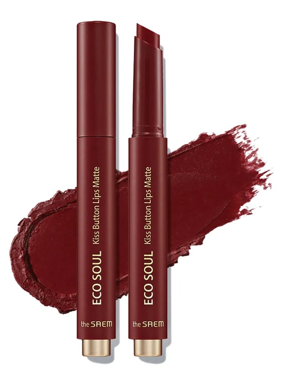 THE SAEM Lipstick Eco Soul Kiss Button Lips Matte 03 Mauve Burgundy