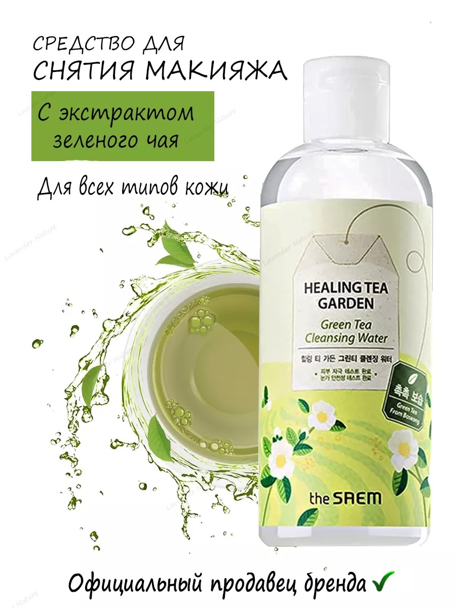 Средство для снятия макияжа The Saem Healing Tea Garden Green Tea Cleansing Water, 300 мл. Очищающая вода с экстрактом зеленого чая - эффективное средство для мягкого очищения и интенсивного увлажнения кожи. Мицеллярная вода содержит полифенолы зеленого чая, которые обладают противовоспалительным и антибактериальным действием, способствуют проникновению биологически активных веществ в кожу и снабжают клетки кислородом, усиливают защитные свойства кожи, уменьшают отеки. Зеленый чай - мощный антиоксидант и нейтрализует агрессивное воздействие свободных радикалов. Способ применения: Встряхнуть флакон перед использованием воды, затем смочить средством ватный диск и приложить его к областям лица с макияжем, затем аккуратно стереть.