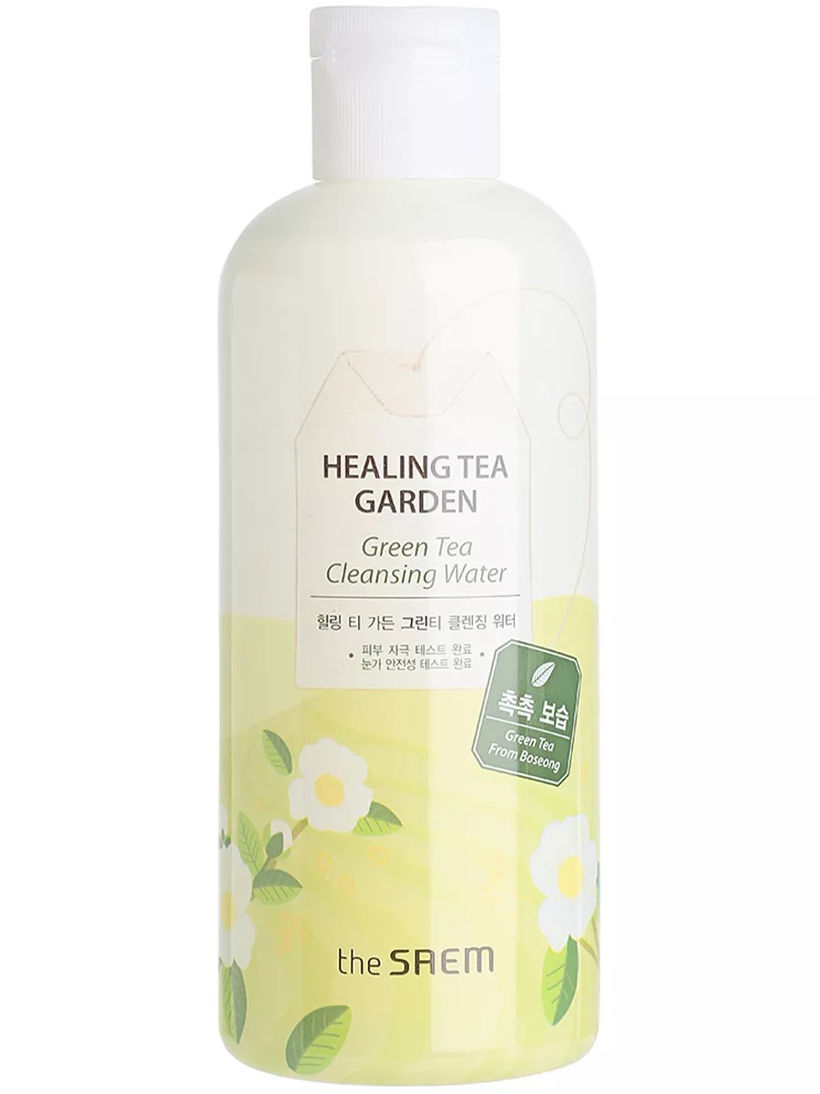 The Saem Healing Tea Garden Green Tea Cleansing Water Вода увлажняющая с экстрактом зеленого чая, 300 мл // Вода увлажняющая с экстрактом зеленого чая // Очищающая вода с экстрактом зеленого чая - эффективное средство для мягкого очищения и интенсивного увлажнения кожи. Вода содержит полифенолы зеленого чая, которые обладают противовоспалительным и антибактериальным действием, способствуют проникновению биологически активных веществ в кожу и снабжает клетки кислородом, усиливает защитные свойства кожи, уменьшает отеки. Зеленый чай - мощный антиоксидант и нейтрализует агрессивное воздействие свободных радикалов. Очищающая вода не только удаляет с кожи макияж и ежедневные загрязнения, но и интенсивно увлажняет кожу, делает её мягкой и свежей. В воде НЕ содержатся искусственные красители и отдушки, бензофенон, парабены, продукты животного происхождения, минеральные масла и тальк. **Способ применения:** Встряхнуть флакон перед использованием воды, затем смочить средством ватный диск и приложить его к областям лица с макияжем, затем аккуратно стереть.