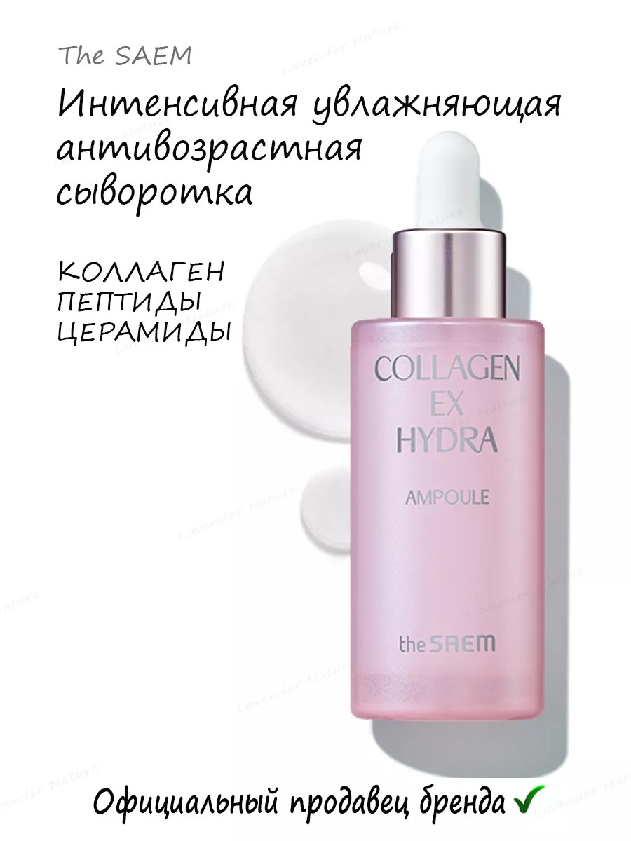 Anti-aging serum against wrinkles contains a complex including low-molecular marine collagen, 5 types of peptides and 5 types of ceramides, thanks to which the skin becomes hydrated and elastic.