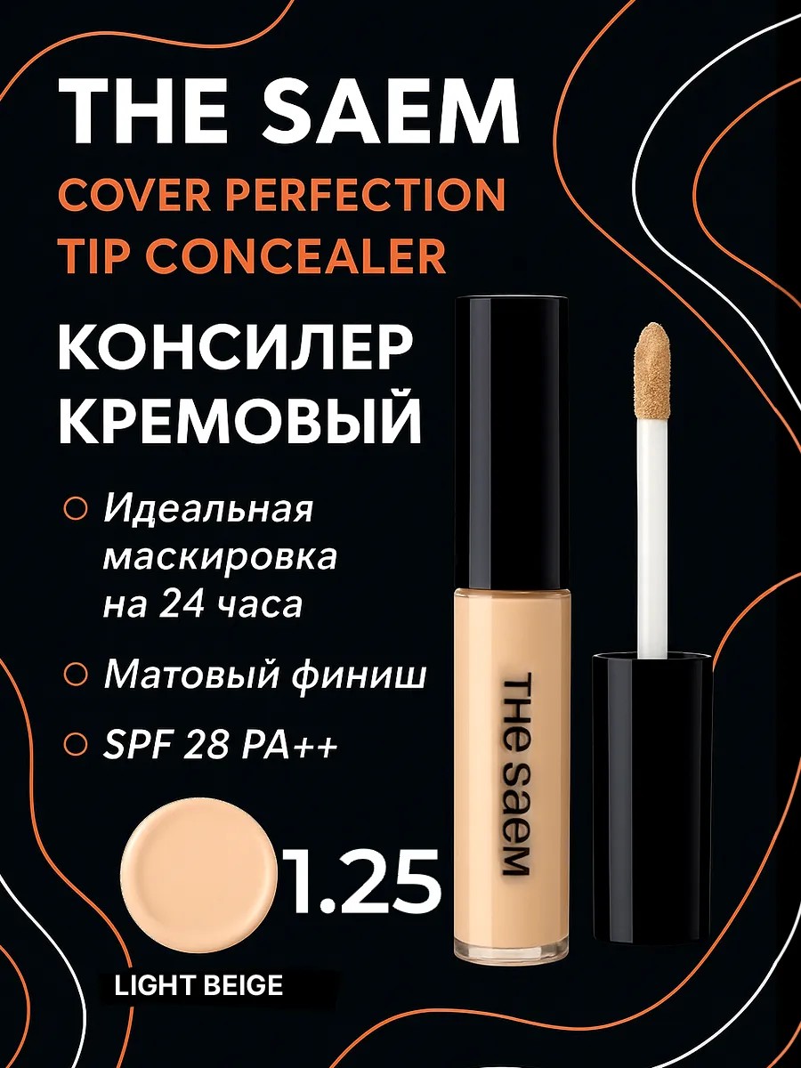 Search keywords: The Saem concealer, liquid concealer Korea, under-eye concealer, face corrector, long-lasting concealer SPF, waterproof concealer, The Saem Cover Perfection Tip Concealer, Korean decorative cosmetics, anti-aging concealer, skin imperfection concealer.