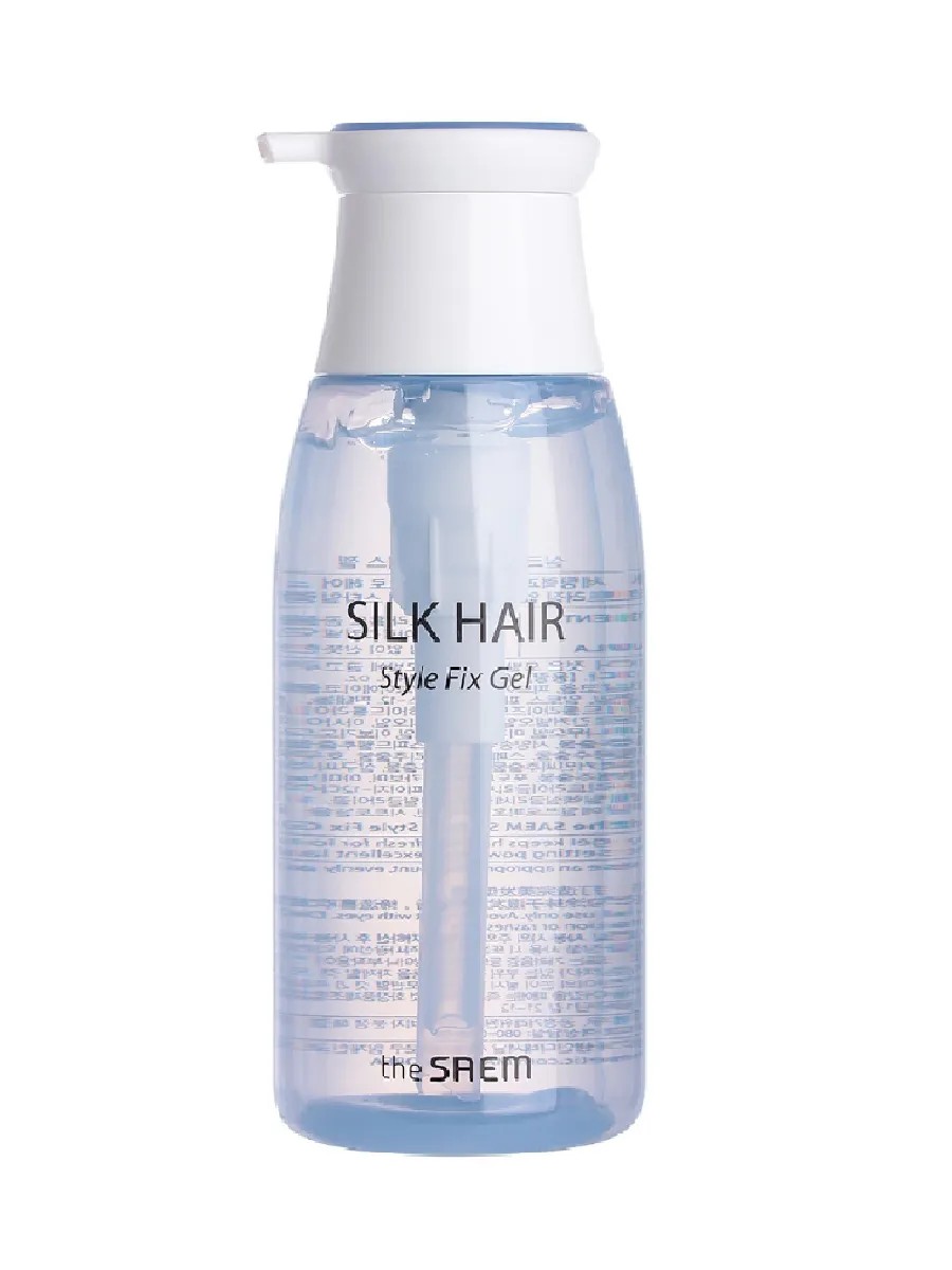 The Saem Silk Hair Style Fix Gel, 300 ml. This moisturizing and soft gel-wax securely holds hair in place and styles. Contains keratin and an oil-based formula to nourish and hydrate hair. It creates a soft shine. It creates a barrier that protects hair from the damaging effects of high temperatures, minimizes damage, and shields curls from harsh environmental influences. Directions: Apply a small amount of gel to clean, dry or slightly damp hair, distribute evenly, and style each strand as desired. Ingredients: Water, Alcohol Denat., PVP, VP/VA Copolymer, Maltose, Carbomer, PEG-60 Hydrogenated Castor Oil, Phenoxyethanol, Aminomethyl Propanol, PPG-2-Deceth-12, Ethylhexylglycerin, Caprylyl Glycol, PEG-12 Dimethicone, Fragrance, Disodium EDTA, Panthenol, Betaine, Simmondsia Chinensis (Jojoba) Seed Oil, Olea Europaea (Olive) Fruit Oil, Camellia Japonica Seed Oil, Butylene Glycol, Hydrolyzed Keratin, Hydrolyzed Wheat Protein, Hydrolyzed Soy Protein, Hydrolyzed Corn Protein, Vitis Vinifera (Grape) Fruit Extract, Vaccinium Angustifolium (Blueberry) Fruit Extract, Undaria Pinnatifida Extract, Solanum Melongena (Eggplant) Fruit Extract, Solanum Lycopersicum (Tomato) Fruit Extract, Sesamum Indicum (Sesame) Seed Extract, Oryza Sativa (Rice) Extract, Morus Alba Fruit Extract, Laminaria Japonica Extract, Glycine Soja (Soybean) Seed Extract, Euterpe Oleracea Fruit Extract, Hydrolyzed Silk.