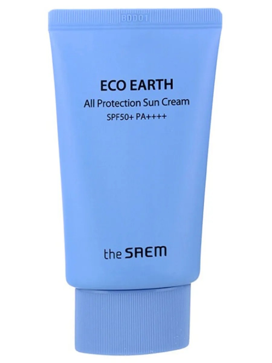 The Saem Eco Earth All Protection Sun Cream SPF50+ PA++++ Крем солнцезащитный // Солнцезащитный крем предназначен для надежной защиты от УФ-излучения кожи, особенно необходим очень светлой коже, а также для кожи с аллергическими реакциями. Благодаря солнцезащитному фильтру SPF50+ PA+++ эффективен в отношении UV-А и UV-B лучей. В составе крема уникальный Natural Plant Power Complex - комплекс натуральных экстрактов и масел, разработанный The Saem, который предупреждает разрушение клеток, ускоряет их регенерацию, а также оказывает увлажняющее, успокаивающее и противовоспалительное действие. ****Способ применения:** Наносить крем перед каждым выходом на открытое солнце. При длительном пребывании на солнце повторять нанесение. Обращаем внимание! Объем средства — 50г, однако туба имеет больший объем, поэтому заполнен не полностью.