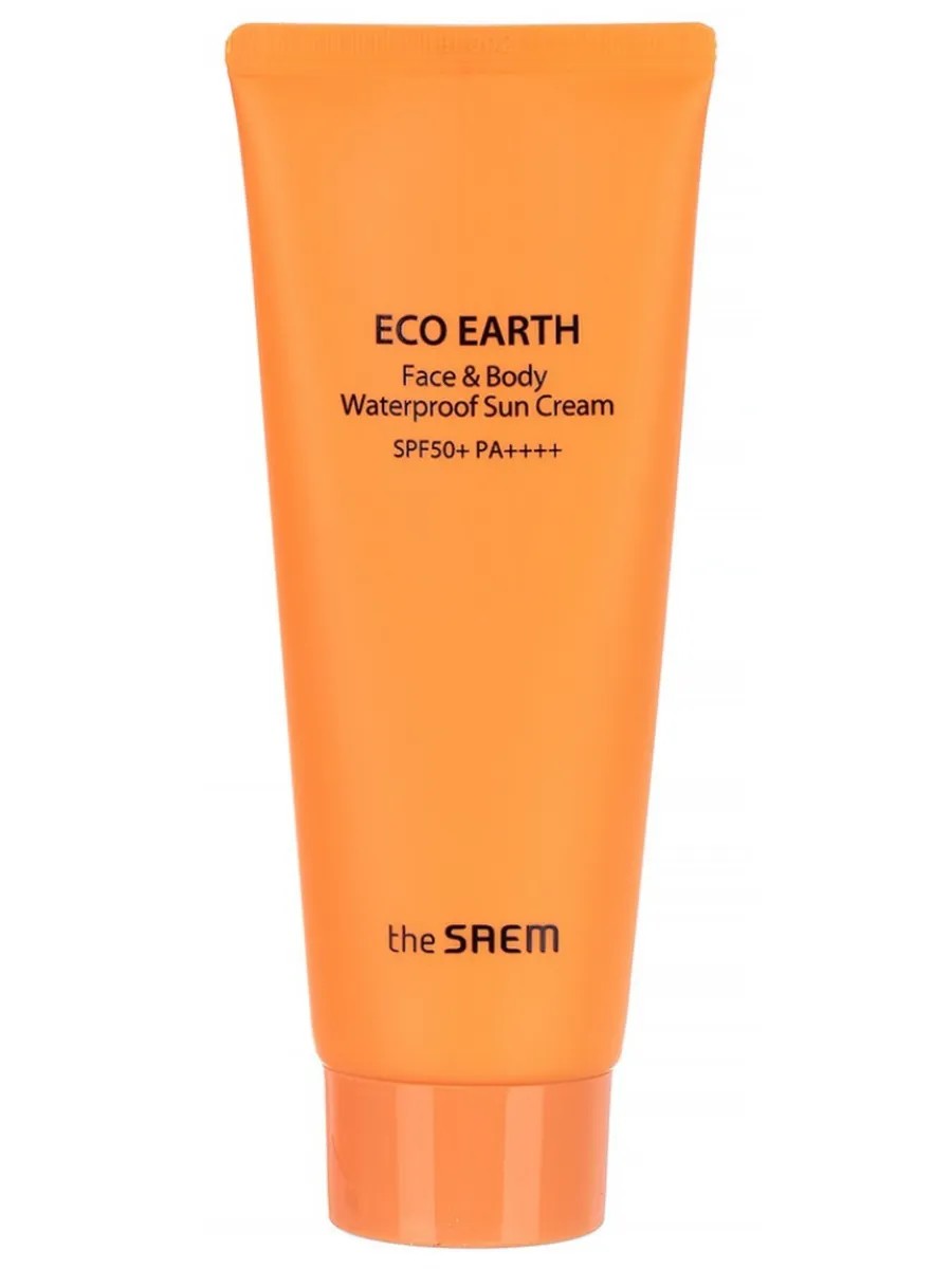 The Saem Eco Earth Face & Body Waterproof Sun Cream SPF50+ PA++++ Водостойкий солнцезащитный крем для лица, 100 мл // Солнцезащитный водостойкий крем для лица и тела эффективно оберегает кожу от фотоповреждений, фотостарения, а также от иссушения, появления пигментных пятен, ожогов и покраснений, подходит для самой чувствительной кожи. Крем: восстанавливает поврежденные участки, оказывает увлажняющее, успокаивающее, укрепляющее, осветляющее, оживляющее действие, снимает стресс. Способ применения: за 15-20 минут до выхода на солнце нанесите крем и обновляйте через каждые 3-4 часа пребывания на активном солнце. Уменьшение количества крема или неравномерное распределение значительно снизит уровень защиты. Не рекомендуется долгое нахождение на солнце, даже при использовании солнцезащитного крема.