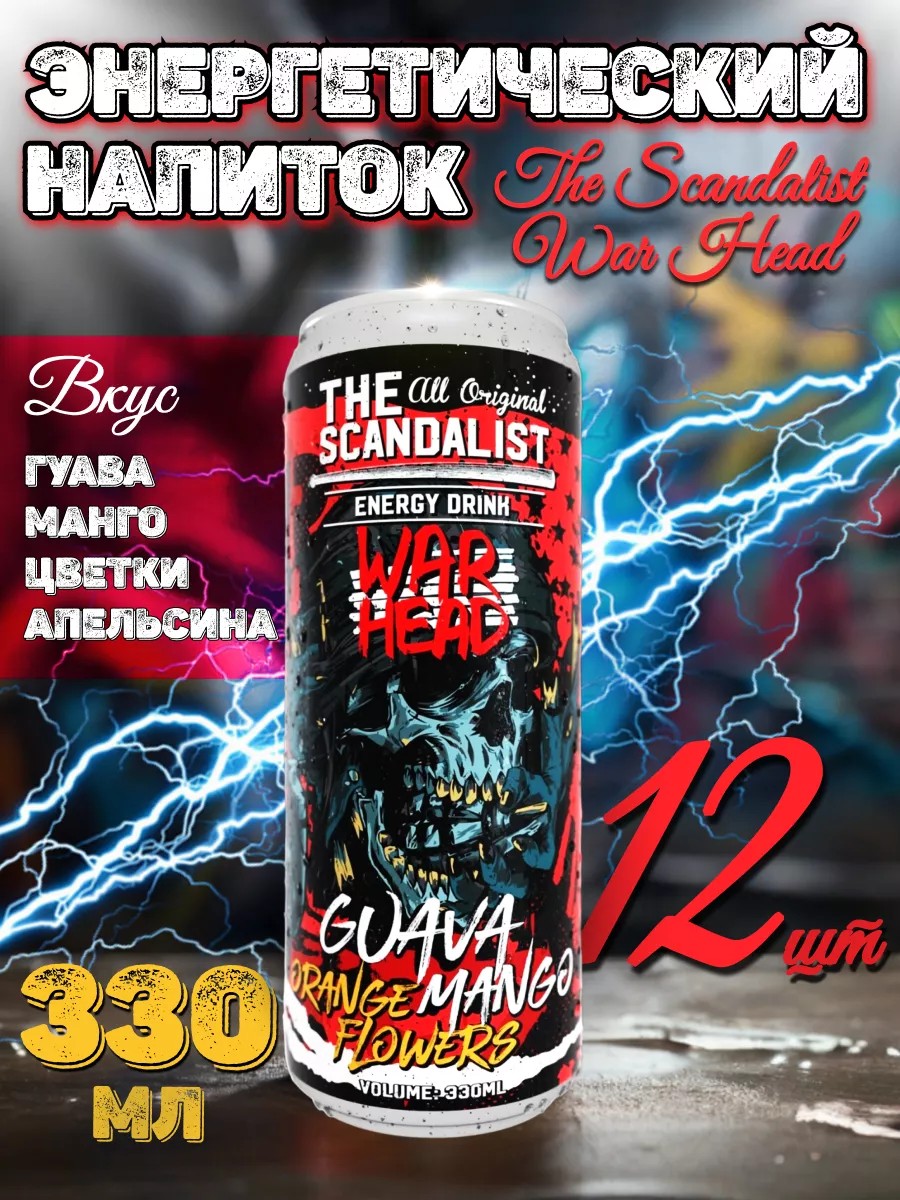 Безалкогольный тонизирующий (энергетический) газированный напиток The Scandalist "War Head" со вкусом гуавы, манго и цветков апельсина.
