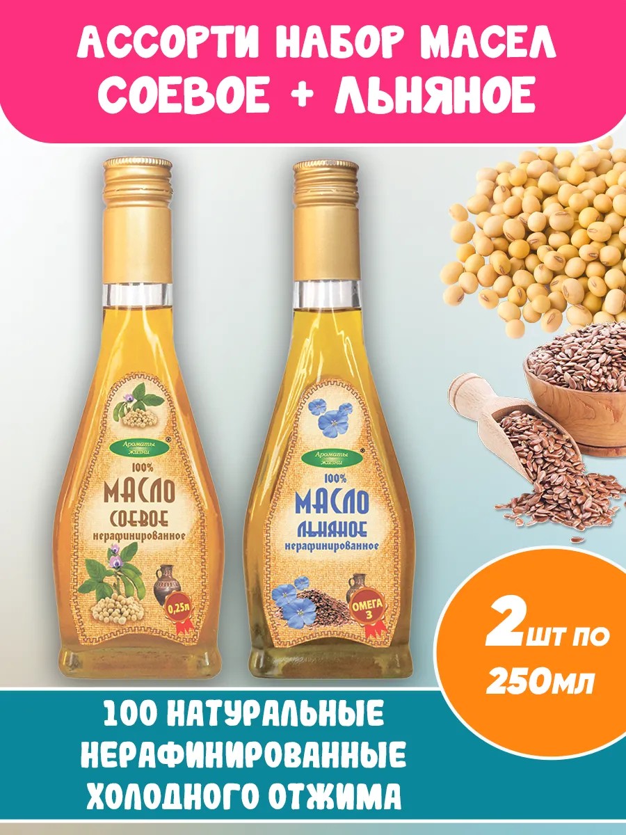 Ароматы жизни Соевое масло + Льняное холодного отжима пищевое 2шт по 250мл