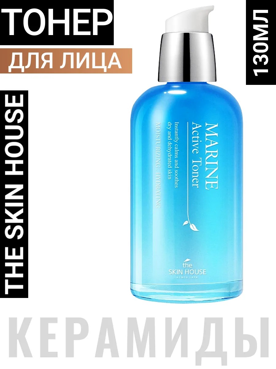 The Skin House Marine Active Toner 130ml Интенсивно увлажняющий корейский тонер с керамидами и пантенолом для лица 130мл. разработанный специально для всех типов кожи, включая проблемную, сухую, жирную, чувствительную, комбинированную, нормальную и даже возрастную. Этот уникальный продукт станет вашим незаменимым помощником в борьбе с сухостью, морщинами и прыщами, обеспечивая максимальный комфорт и уход.