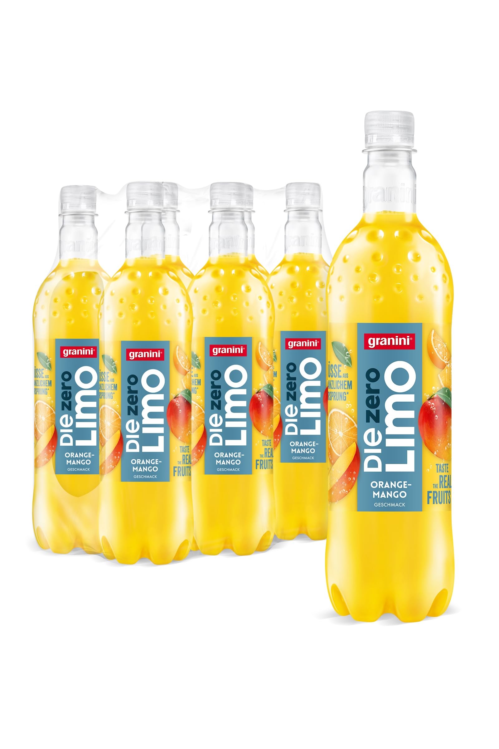 Die Limo von granini Zero Orange-Mango (6x 1l), natürlich erfrischend, mit Geschmack aus echten Früchten, Süße aus pflanzlichem Ursprung, ohne Aspartam, nur 13kJ 3 kcal auf 100ml, vegan