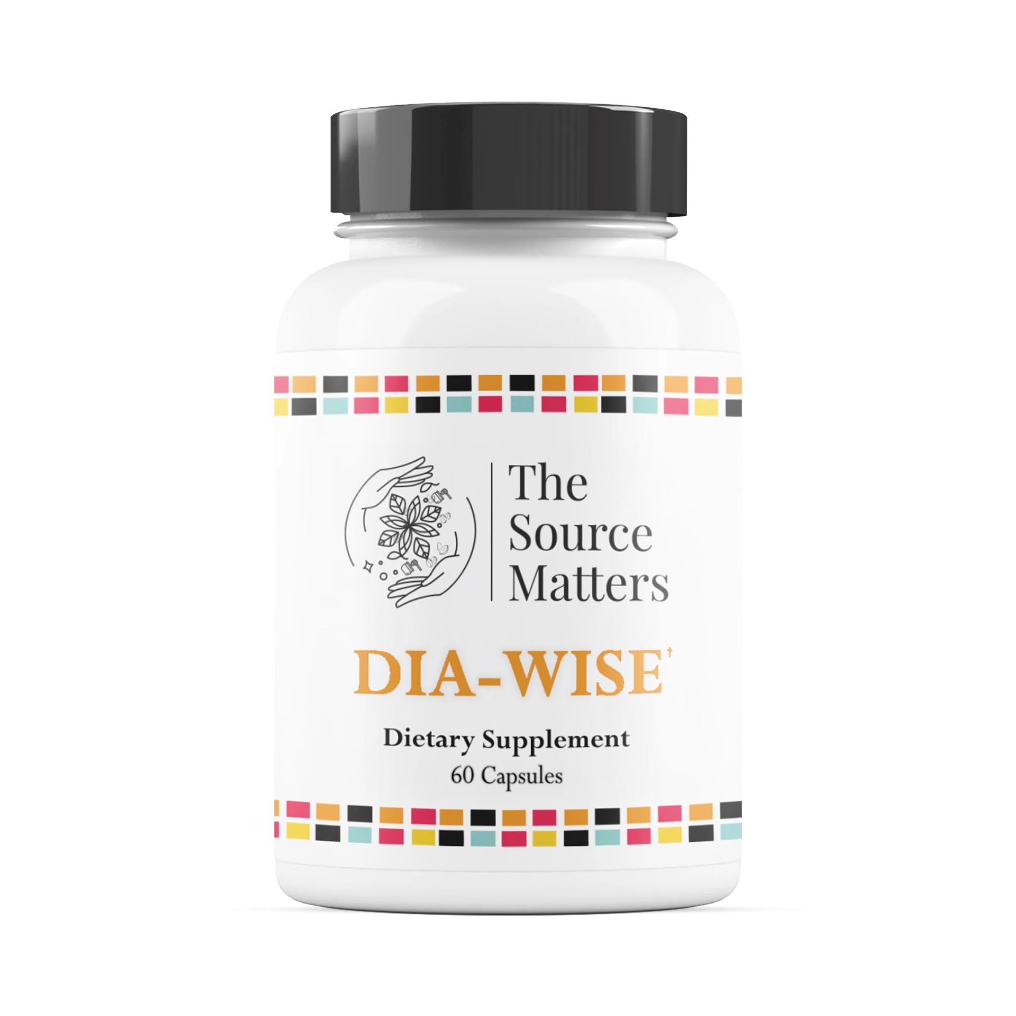 DIA-WISE by The Source Matters is a metabolic health supplement formulated with key nutrients that support energy production, nutrient metabolism, and overall cellular function. Featuring alpha lipoic acid, chromium, biotin, vanadyl sulfate, and essential B vitamins, this formula is designed to promote metabolic efficiency and activate important pathways such as AMPK. Cinnamon bark extract and other ingredients work synergistically to support insulin function and healthy nutrient utilization.