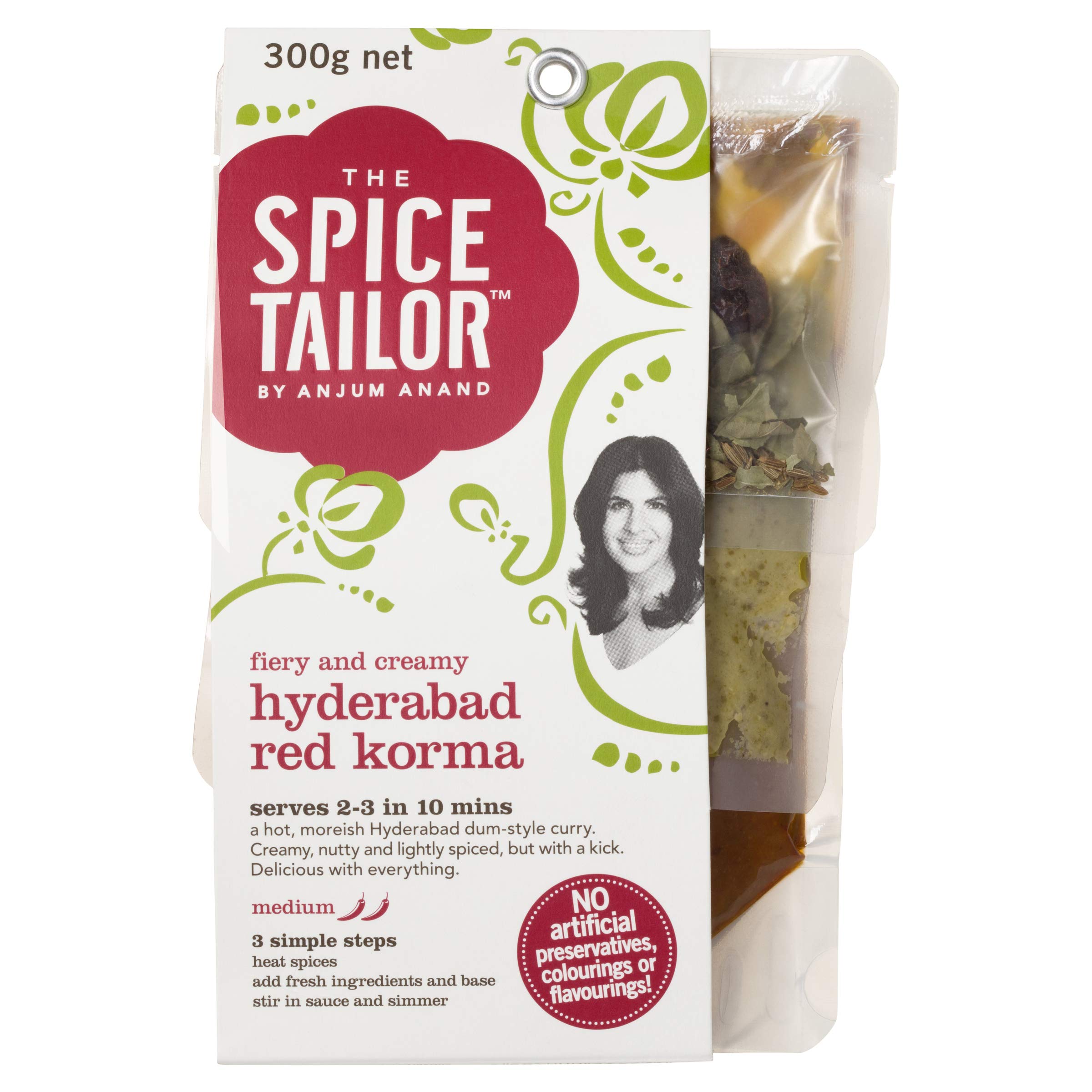 The Spice Tailor Hyderabad Red Korma 300g A spiced Indian curry sauce with yoghurt, nuts and herbs in individual sachets. INGREDIENTS Onion, Yogurt (MILK) (22 ), Water, Tomato Puree, Sunflower Oil, CASHEW NUTS (4.5 ), Coriander Leaf, Ginger, Whole Herbs, Garlic, Powdered Herbs, Mint Leaf, Salt, Poppy Seeds, Chili Powder, Whole Red Peppers (0.5 ), Lotus Seeds INSTRUCTIONS FOR USE Serves 2-3 1. Heat 1 teaspoon of oil in the pan, add spices and cook for 20 seconds. 2. Add the chicken, meat or vegetables, lightly brown for 2-3 minutes, then add the base sauce and simmer for 2 minutes 3. Stir in the main sauce and fish seafood or eggs (if using) and simmer for a further 3-5 minutes or until the meat or other proteins are cooked through SAFETY WARNING Do not use if the bag is inflated MANUFACTURER CONTACT INFORMATION THE SPICE TAILOR LIMITED, HORTON HOUSE, CHANGE OF FLAGS, LIVERPOOL L2 3PF See moreThe Spice Tailor Hyderabad Rode Korma, 300g The Spice Tailor Hyderabad Red Korma 300g Een gekruide Indiase currysaus met yoghurt, noten en kruiden in individuele zakjes. INGREDIËNTEN Ui, Yoghurt (MELK) (22 ), Water, Tomatenpuree, Zonnebloemolie, CASHEWNOTEN (4.5 ), Korianderblad, Gember, Hele Kruiden, Knoflook, Poedervormige Kruiden, Muntblad, Zout, Maanzaad, Chili Poeder, Hele Rode Pepers (0.5 ), Lotus Zaden GEBRUIKSAANWIJZING Serveert 2-3 1. Verhit 1 theelepel olie in de pan, voeg kruiden toe en kook gedurende 20 seconden. 2. Voeg de kip, vlees of groenten toe, licht bruin gedurende 2-3 minuten, voeg de basissaus toe en laat 2 minuten sudderen 3. Roer de hoofdsaus en vis zeevruchten of eieren (indien gebruikt) erdoor en laat nog 3-5 minuten sudderen of tot het vlees of andere eiwitten gaar zijn VEILIGHEIDSWAARSCHUWING Niet gebruiken als het zakje opgeblazen is CONTACTINFORMATIE FABRIKANT THE SPICE TAILOR LIMITED, HORTON HOUSE, WISSELING VLAGGEN, LIVERPOOL L2 3PF Meer bekijken