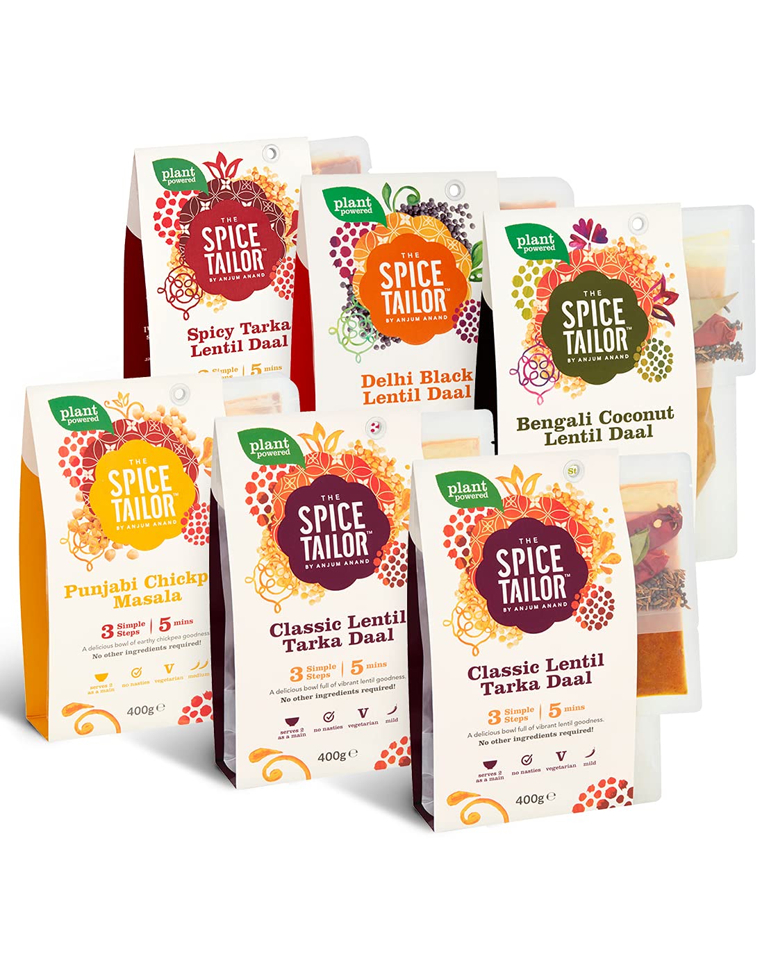 The Spice Tailor Pack of 6 Delhi Black Lentils + 1 Punjabi Chickpea Masala + 1 Spicy Tarka Daal + 2 Classic Tarka Daal Lentils + 1 Bengali Coconut Lentil Daal