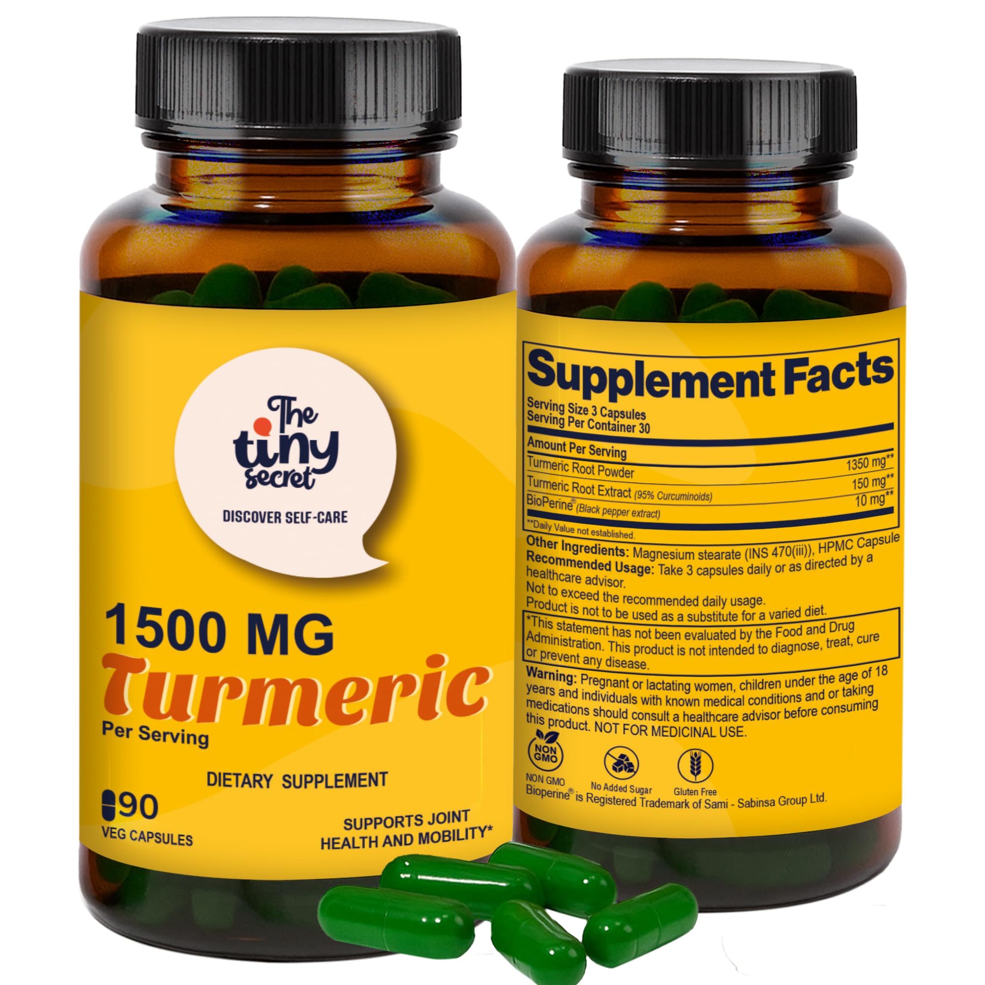 The Tiny Secret Turmeric 1500mg Supports Joints Health and Mobility with Turmeric Root Powder Extract with BioPerine (Black Pepper Extract) Non-GMO Gluten-Free Daily Nutrition - 90 Veg Capsules