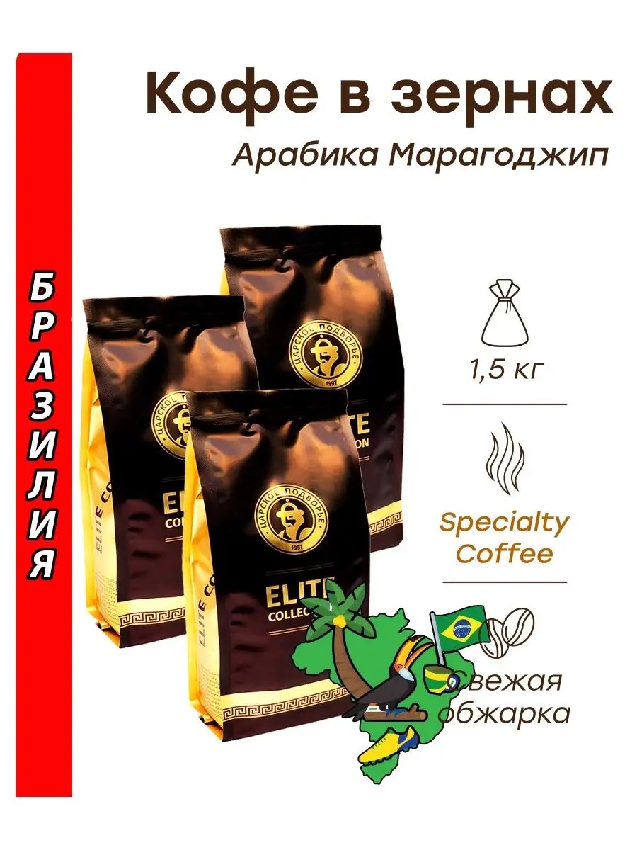 Царское подворье Кофе в зернах БРАЗИЛИЯ (марагоджип) 1,5 кг (3х500г) / Царско