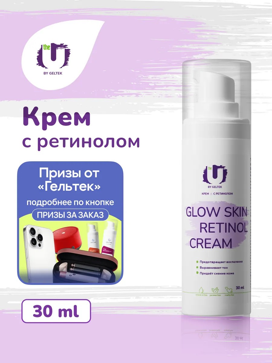 Крем Glow Skin Retinol Cream содержит 0,3% активного ретинола. В сочетании с пептидом противовоспалительного действия эффективен для проблемной кожи с гиперкератозом, склонностью к высыпаниям, акне, избавляет от прыщей и следов на месте воспалений — пятен постакне.