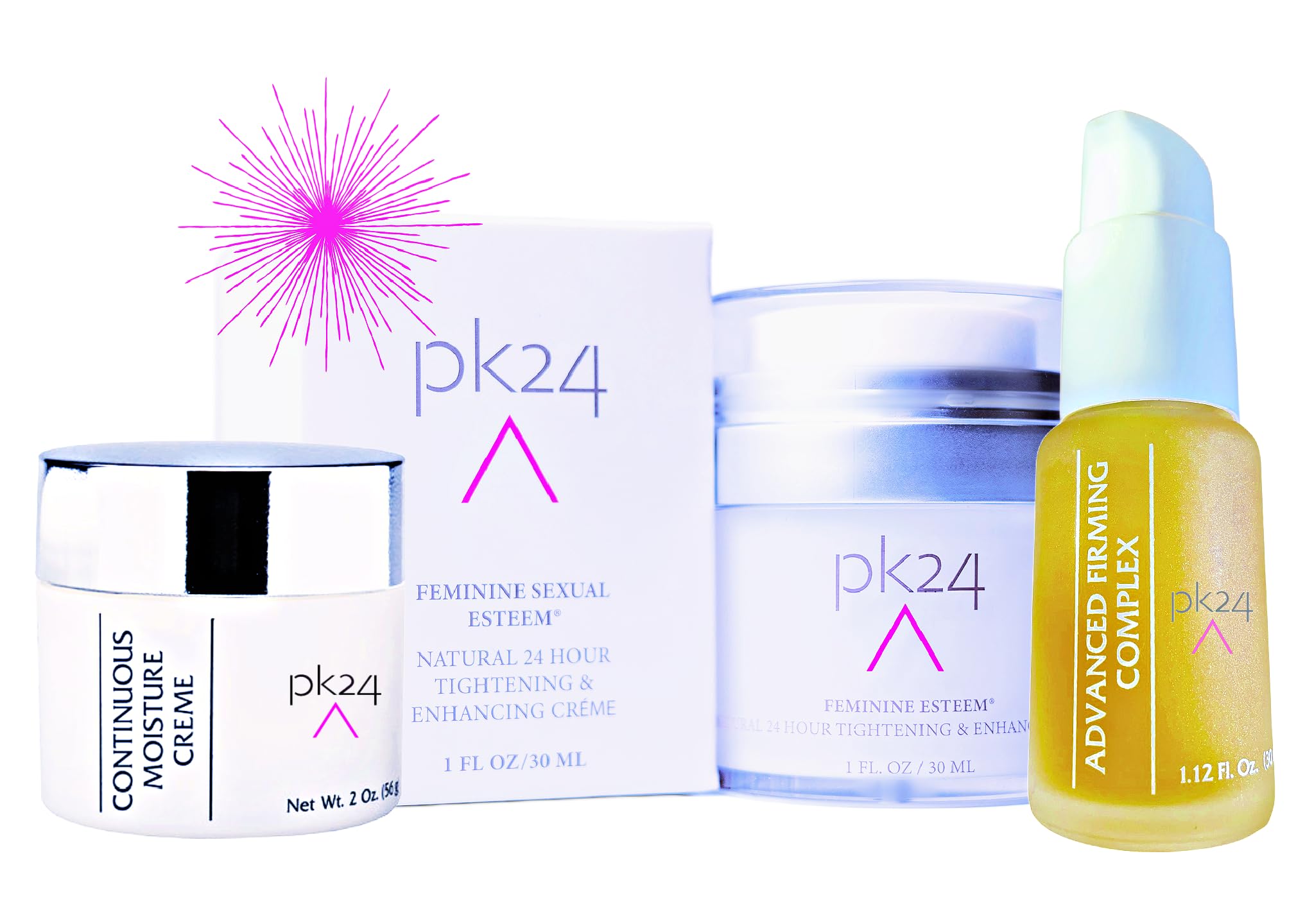 The V Spot Elevated Feminine Skincare System.Firm, Tone, Taut, Volume Restoration Inside & Out! Rapid, perceptible, meaningful results for maximum firming, volume replenishment, and hydration. Lift, re-firm, tone, tighten, and moisturize feminine skin both Inside & Out! Our Patented Matrixyl Peptides Complex boosts elasticity to re-firm, tone, and replenish volume loss to deflated feminine skin. Continuous moisture replenishment and bio-lipid repair designed to reprogram dry, depleted skin and restore hydrated, rejuvenated comfort. The V Spot System features three dermatologist developed formulas designed to reinvigorate and restore supple, bounce-back snap to the skin, improve structural resilience, and amplify feminine control. Childbirth, hormonal imbalances, and natural aging affect the integrity of feminine skin. The Natural moisture perfecting bio-response modifiers and "impressive" firming peptides in the V Spot System target, rebalance & reprogram skin to behave healthier, more youthful, and more resilient in as little as 5 to 10 days. You will enjoy immediate results, which is always wonderful but the progressive improvement over the coming days and weeks are outstanding!Dermatologist Formulated, Clinically & Consumer Proven, Made Only in The USA. Velvety Smooth-To-The-Touch Skin Conditioning, Volume Restoration, Skin Firming, Bounce-Back Skin Tightening & Bliss Restoration. Patented Formulations, Proprietary Blends, High-Performance Complex Ingredients, Vegan, Lipid Rich, Antioxidants. Natural Clean Beauty. One - Taut & Tone Advanced Firming Concentrated Serum; Patented Matrixyl Peptied Re-Firming Complex. Advanced Firming, Lifting, Contouring & Volume Replenishment. Apply a MINIMUM of twice daily for impressive, rapid results beginning in 5 to 10 days - depending on skin density. Progressive - ongoing results with continued use. Must use a minimum of twice a day for maximum "impressive firming" as sited in Clinical Studies. Once desired firming is achieved, apply a minimum of 1X 5 days per week. One - Continuous Moisture Creme. Luscious, light-feeling creme instantly delivers continuous bursts of moisture between parched skin cells, rehydrating surface lines and crepiness within seconds and noticeably reprogramming extremely dry skin to act like moist, youthful, comfortable skin within days of twice-daily use. Smoothes rough, dry skin to a vibrant, ultra-soft texture, Helps rebuild skin’s natural moisture barrier. Apply as needed to any external skin area. One - pk24 Elevated Feminine Skin Care Serum. Helps to re-firm, reujuvenate, tone and tighten. Restores supple bounce-back resilence and volume to deflated and depleted feminine skin.