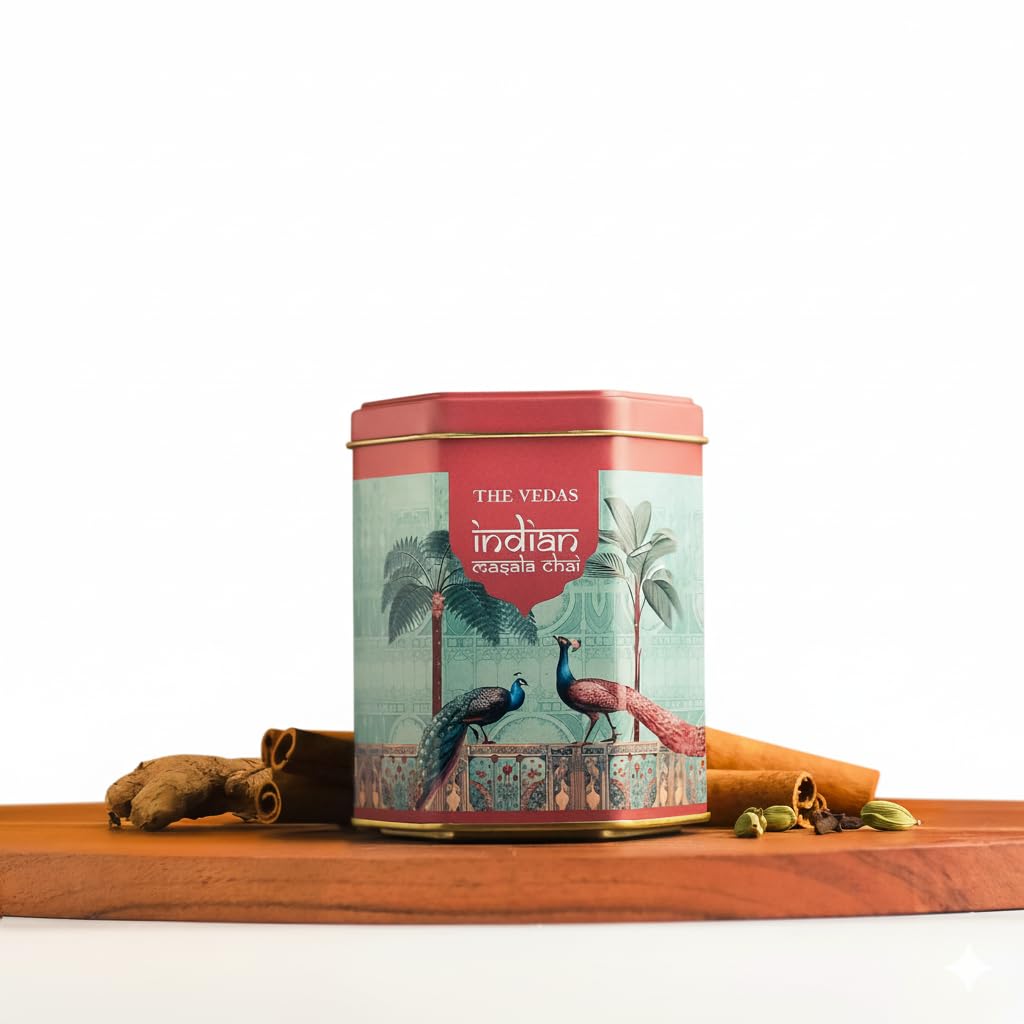 The Vedas Indian Masala Chai 150 g, 75 tasses Épices 100 authentiques et naturelles : cardamome, cannelle, poivre noir, clous de girofle, gingembre, noix de muscade Thé Chai Latte