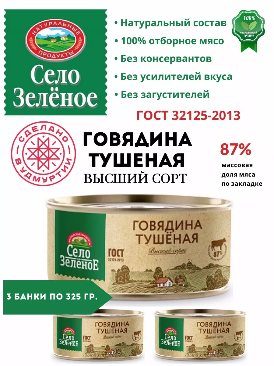 Село Зелёное Говядина тушеная ГОСТ высший сорт 325 гр 3 шт.