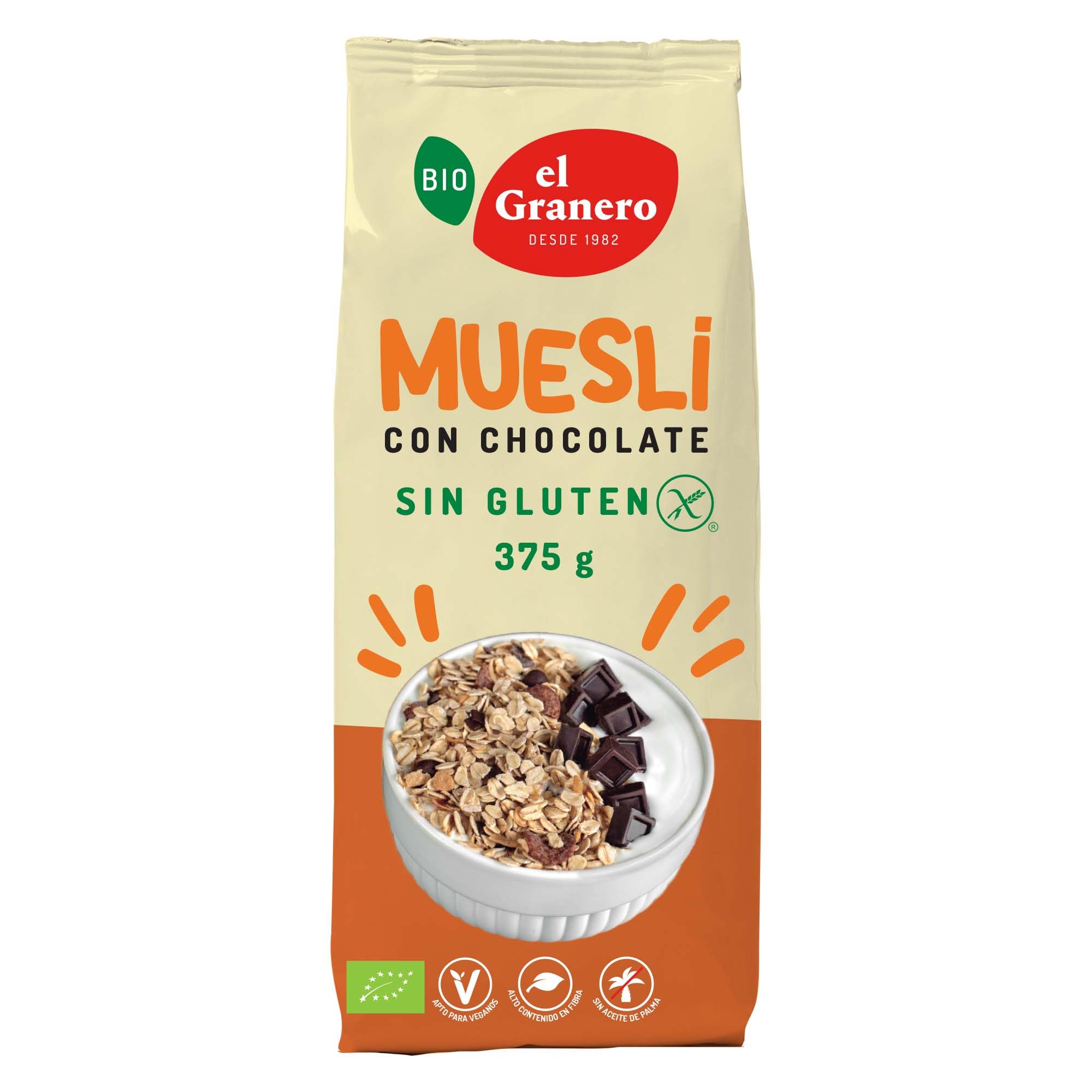 About us: Since 1982, el Granero Integral has been committed to healthy food that is accessible to everyone. We are a certified BCorp company and meet social and environmental impact standards. Good for you, good for the planet!. Natural ingredients: gluten-free whole wheat flakes, 81 roasted corn flakes with dark chocolate, 6.5 dark chocolate flakes, 6 (full cane sugar, cocoa mass, cocoa butter, emulsifier: sunflower lecithin), rice flakes 4 and corn balls with dark chocolate 2.5 cocoa. Powder 0.5 May contain traces of milk, nuts, sesame, mustard, lupine and soy. Multiple Benefits: Our product is a great source of fiber and essential nutrients. Helps improve intestinal health and the antioxidants in muesli contribute to protection against cell damage. Application: Can be added to breakfast drink, juices, yogurt, etc. It is recommended to store it in a cool and dry environment. Vegan: this dark chocolate muesli is suitable for vegan consumption because it contains no animal ingredients, milk, lactose or added sugars. It is also gluten-free.MUESLI con chocolate 375gr. BIO is een graanmengsel dat met melk of yoghurt kan worden gegeten. Het is doorgaans geliefd bij zowel kinderen als volwassenen. Het gewicht bedraagt 375 g Daarmee past heOver ons: Sinds 1982 zet el Granero Integral in voor een gezonde voeding die voor iedereen toegankelijk is. Wij zijn een gecertificeerd BCorp-bedrijf en voldoen aan de normen voor sociale en ecologische effecten. Goed voor jou, goed voor de planeet!. Natuurlijke ingrediënten: glutenvrije volkorenvlokken, 81 geroosterde maïsvlokken met donkere chocolade, 6,5 donkere chocoladevlokken, 6 (volle rietsuiker, cacaomassa, cacaoboter, emulgator: zonnebloemlecithine), rijstvlokken 4 en maïsballetjes met donkere chocolade 2,5 cacao. Poeder 0,5 Kan sporen van melk, schaalvruchten, sesam, mosterd, lupine en soja bevatten. Meerdere voordelen: ons product is een geweldige bron van vezels en essentiële voedingsstoffen. Helpt de darmgezondheid te verbeteren en de antioxidanten in muesli dragen bij aan de bescherming tegen celschade. Toepassing: kan worden toegevoegd aan ontbijtdrank, sappen, yoghurt, enz. Het wordt aanbevolen om het in een koele en droge omgeving te bewaren. Veganistisch: deze donkere chocolade muesli is geschikt voor veganistische consumptie omdat het geen dierlijke ingrediënten, melk, lactose of toegevoegde suikers bevat. Het is ook glutenvrij.