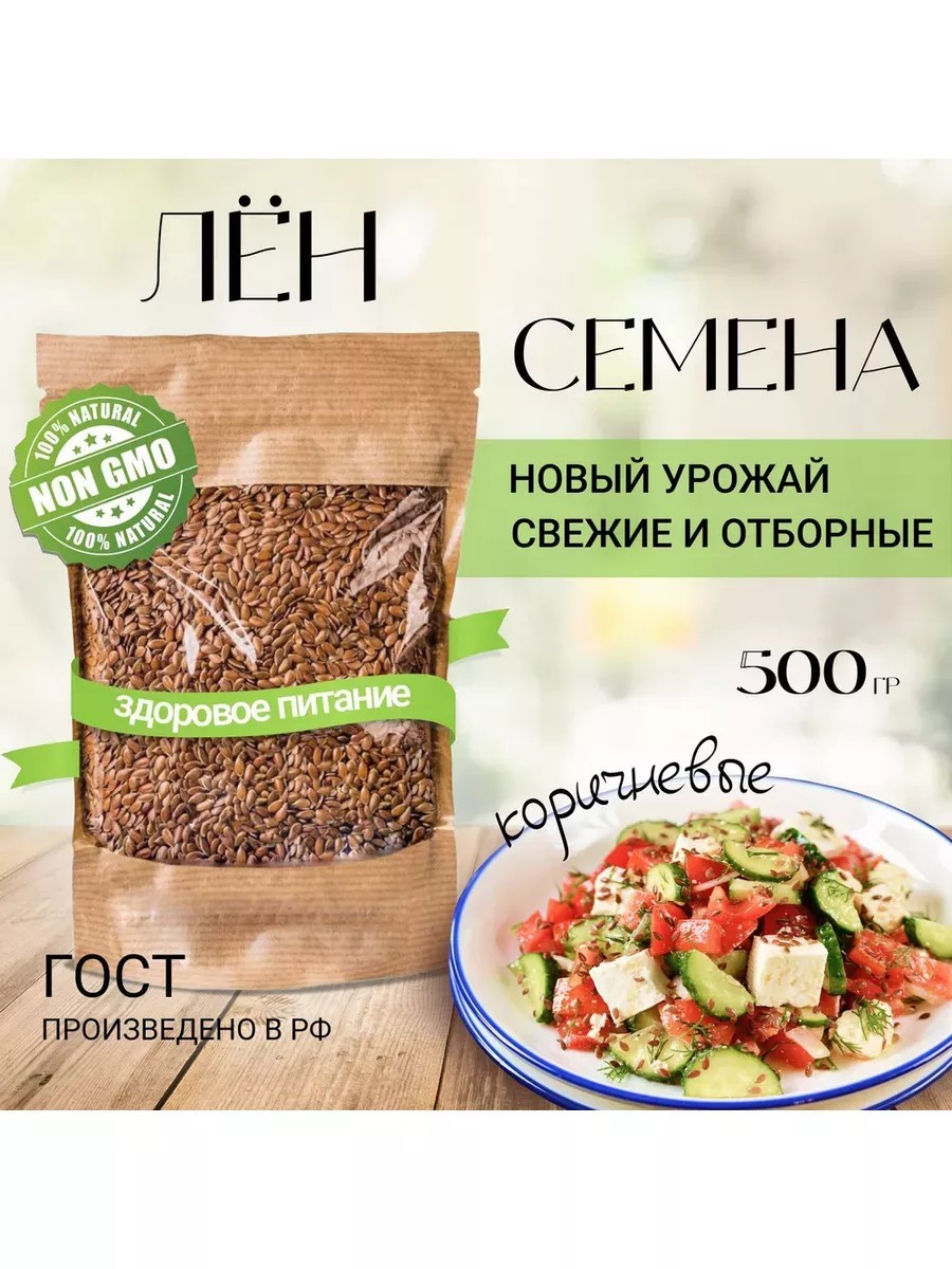 Flaxseeds are a source of complete plant protein and fiber, vitamins, and microelements. Flaxseed oil contains more omega-3, omega-6, and omega-9 polyunsaturated fatty acids than fish oil. This is especially beneficial for vegetarians, or vegans, as they are also called. This superfood is extremely rich in lignans, which reduce the risk of cancer and help improve health. Simply add flaxseeds to cooked meals or blend them into your favorite smoothie. The seeds are often used in baking rolls and other baked goods, adding missing nutrients and enhancing the flavor of your culinary masterpieces for holidays and everyday life. This will delight your men and surprise your mother. Regular flaxseed consumption helps eliminate toxins and waste from the body, boosts immunity, improves gastrointestinal function, and has a positive effect on overall well-being. It is also used as a supplement to healthy lifestyle dishes. This diet promotes stable and effective weight loss. Fresh, crunchy, and low-fat, flaxseeds are as beneficial as sesame and chia seeds, pumpkin and sunflower seeds, or psyllium. This natural product contains a large amount of fiber, making it widely used in healthy eating, veganism, and keto diets. The seed is filling, reduces hunger, and helps remove toxins from the body. This makes you feel healthier. Whole grains are sprouted and can easily be ground into coarsely ground flaxseed in a coffee grinder or ground into flaxseed meal, which is conveniently stored in a jar. Brown flaxseed is added to porridges and salads, and is used in urbech and crispbreads—it's delicious and healthy. Cold-pressed oil is made from the seed and used as a dietary supplement. This 100% eco-friendly, GMO-free product supports your health. Our flaxseeds are packaged in 500g and 1000g stand-up pouches, as well as 2000g pouches and a 5kg large bag. They are additionally wrapped in shipping film to ensure undamaged delivery. We recommend storing them in an airtight bag or dark jar.