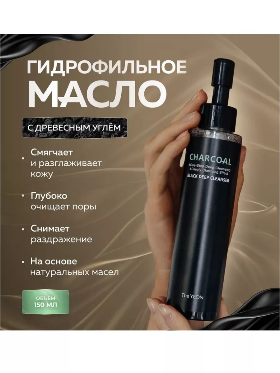 Гидрофильное масло с древесным углём The YEON Charcoal Black Deep Cleanser бережно удаляет загрязнения из пор, тщательно растворяет даже водостойкий макияж. Сочетает в себе действие сразу 2-х продуктов для умывания: гидрофильного масла и пенки. Данное средство глубоко очистить поры, удалит стойкий макияж, избавит от лишнего себума и черных точек, сделает кожу чистой, свежей и гладкой, без стягивания и дополнительного очищения.