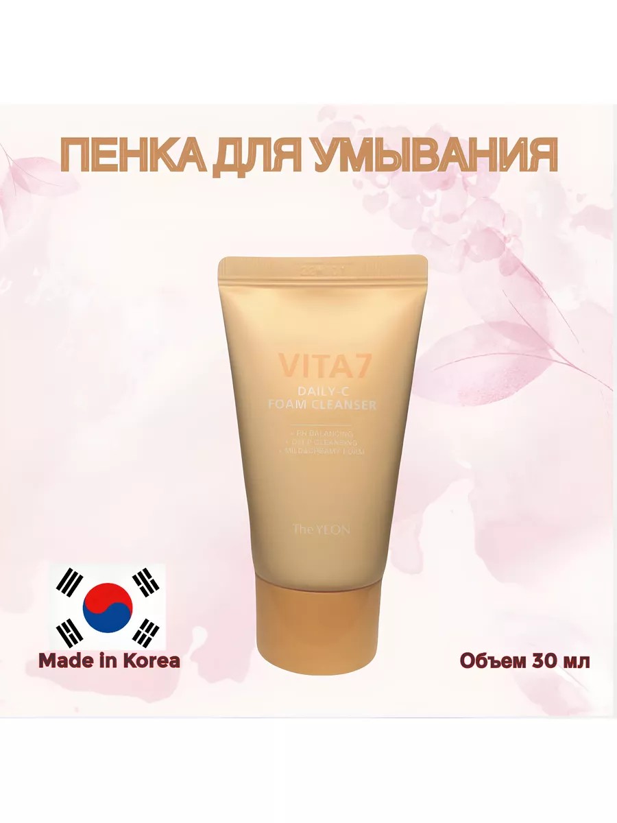The Korean Vita7 daily-C foam cleanser, 30 ml, is designed for deep skin cleansing.