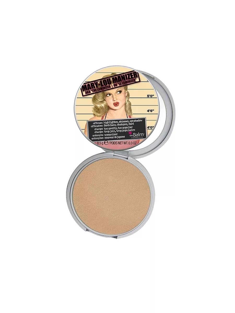 Хайлайтер Mary Lou Manizer от известного американского бренда THE BALM представлен в яркой и узнаваемой упаковке с характерным ретро стилем в направлении pin up. Это качественный косметический продукт, который пользуется огромной популярностью среди миллионов покупателей во всем мире, среди которых немало профессиональных визажистов.
