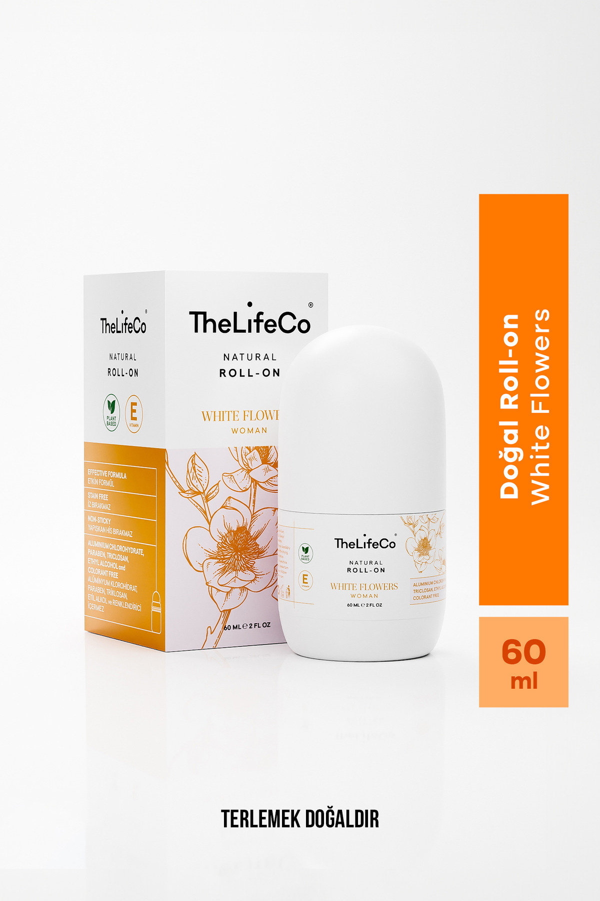 TheLifeCo White Flowers Natural Roll-on makes you feel natural and fresh with its floral scent. Potassium alum, a natural salt, is used in its production. Thanks to potassium alum, it neutralizes bacteria that cause bad odors without preventing sweating.