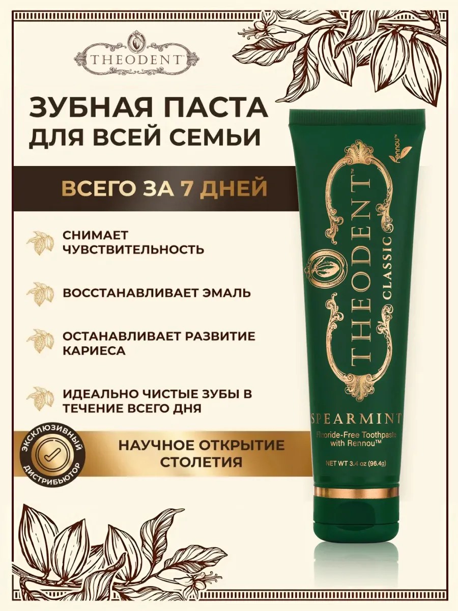 Зубная паста Theodent с экстрактом какао-бобов - абсолютно безопасная альтернатива средствам с содержанием фтора, которая запускает естественный процесс восстановления зубной эмали.