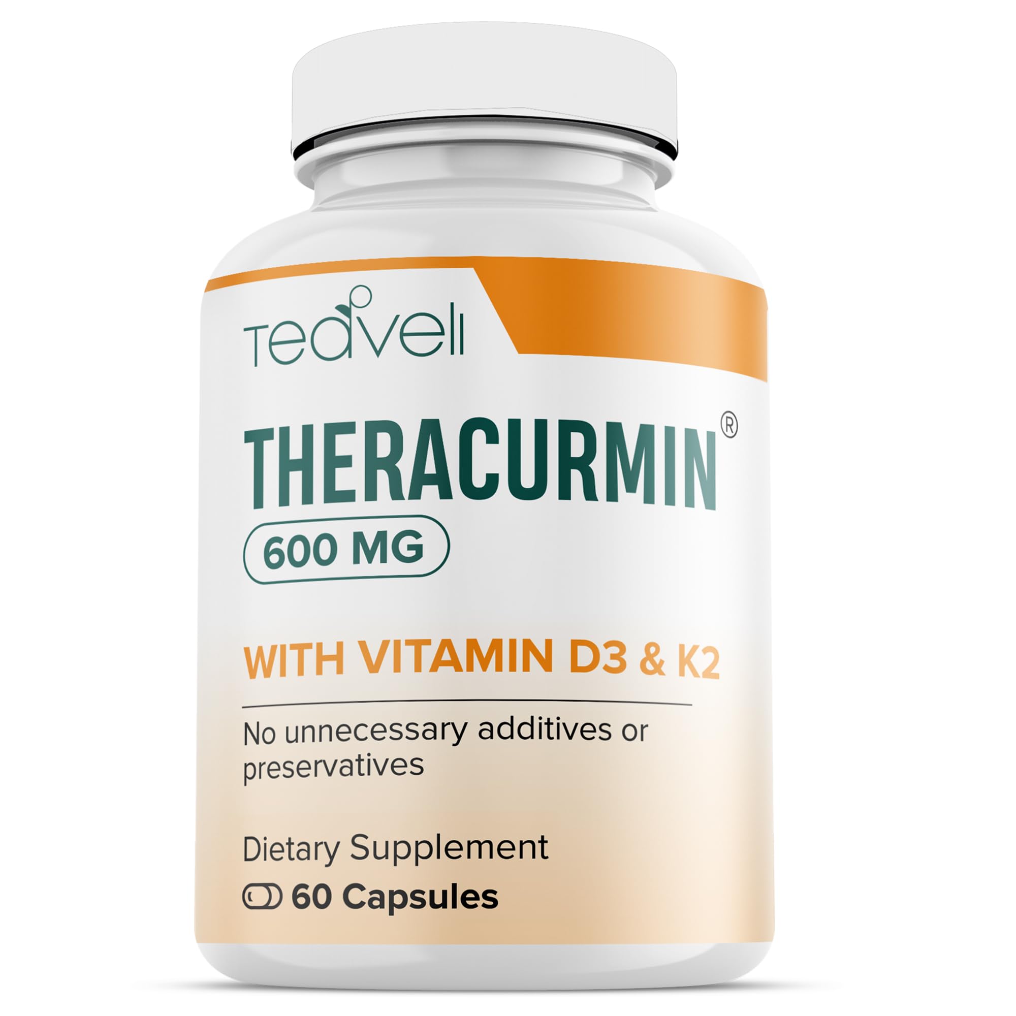 GMP-CERTIFIED THIRD-PARTY TESTED: Manufactured in a GMP certified facility in Utah. Every batch tested for heavy metals and contaminants (certificates available on request). TRULY CLEAN FORMULA: Rice fiber used solely as a natural flow agent - no synthetic fillers, magnesium stearate, or processing aids. Zero gluten, dairy, soy, artificial colors, flavors, or common allergens. CLINICALLY STUDIED CURCUMIN SUPPLEMENT: Theracurmin uses advanced dispersion technology that has been extensively researched for 27-40x better bioavailability compared to standard curcumin extracts. Our formulation supports a balanced inflammatory response, and post-exercise muscle recovery. . 600mg THERACURMIN PER SERVING: Each serving delivers 600mg of Theracurmin ( 180mg Curcumin), the most effective studied dosage of Theracurmin for joint support, muscle recovery, and energy levels. ENHANCED WITH VITAMIN D3 K2 (MK-7): Our extra strength Theracurmin supplement is enhanced with 600 IU Vitamin D3 (100 DV) and Vitamin K2. While Vitamin D3 supports 100 processes in the body including immune function, bone health, and mood, Vitamin K2 directs calcium to where it belongs- bones and teeth, supporting heart health. .