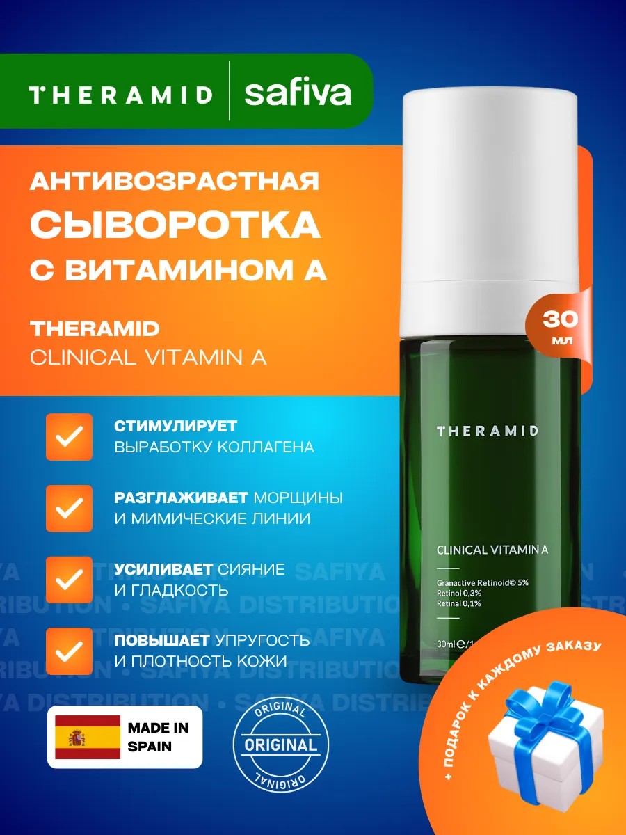 THERAMID Clinical Vitamin A - мощная ночная сыворотка. Стимулирует выработку коллагена и обновление клеток. Антивозрастная формула эффективно борется с признаками старения кожи, усиливает защитные функции эпидермиса, предотвращая негативное влияние внешних факторов.