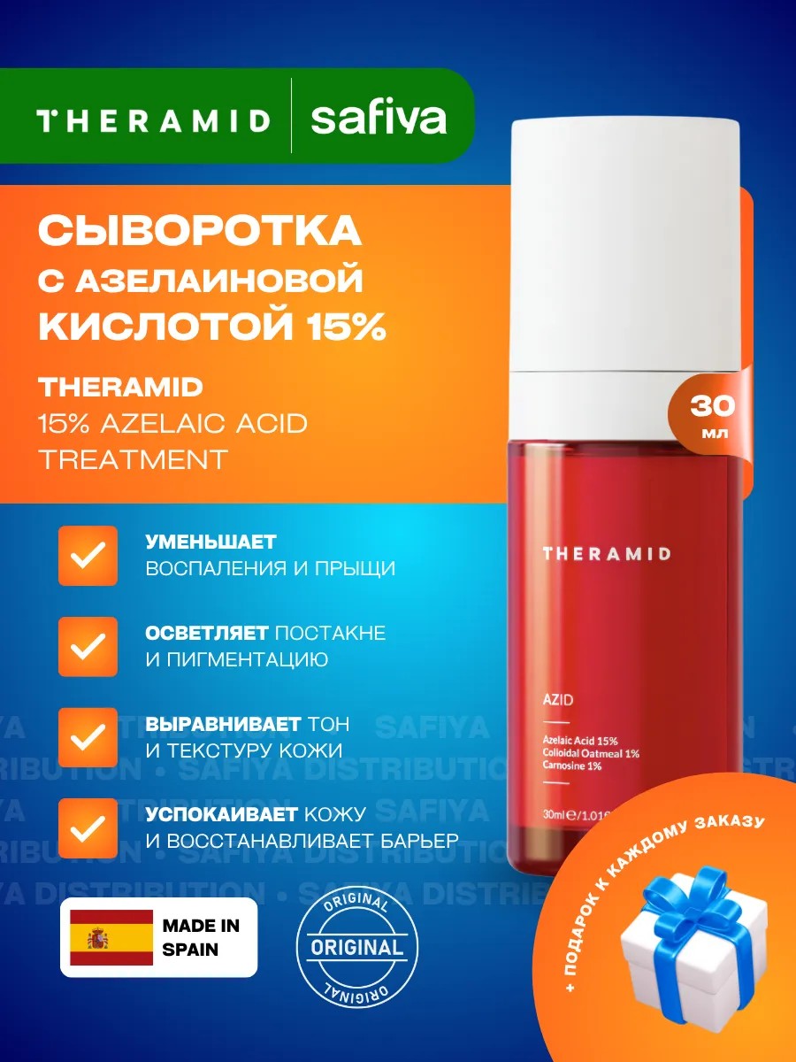 THERAMID 15% Azelaic Acid Treatment - восстанавливающая сыворотка для ухода за проблемной и жирной кожей лица. Средство от постакне, прыщей и пигментных пятен подходит для ежедневного использования, как ночной и дневной уход.