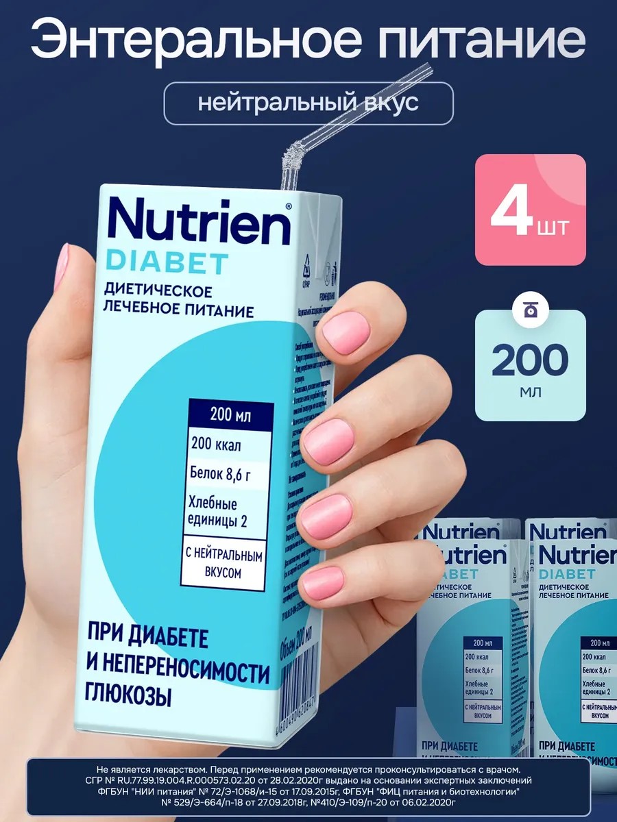 Nutrien Лечебное питание Нутриэн Диабет энтеральное 200 мл, 4 шт