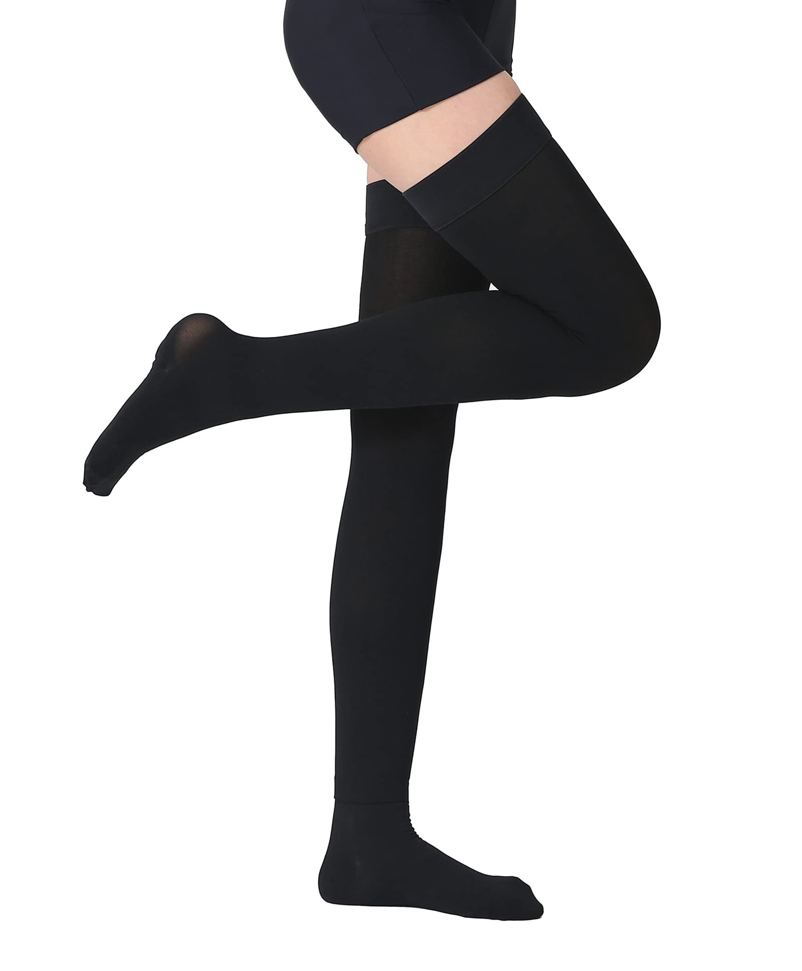 MGANG thigh high compression stockings provide firm 20-30mmHg graduated pressure to encourage fluid flow in your circulatory and lymphatic system. These compression stockings offer a classic fit all while providing the benefits of medical-grade compression. MGANG Medical compression stockings help prevent swelling, edema fluid retention, DVT vein clots, pooling of blood, you will notice the change if you wear these a few hours each day. All-day Comfort - These thigh high compression stockings are made with soft spandex yarn which makes them comfortable for all day wear. Dot Top - They have a wide, comfortable silicone top band that stays in place and makes it easy to put on. Knit-In Heel - Defined, Reinforced heel pocket increases durability and sock orientation to achieve ergonomic fit. Comfort Toe - Toeless design for inspection, increased comfort, and sandal footwear. Graduated compression technology is greatest at the ankle and decreases gradually up the leg to promote healthy circulation and keep you feeling energized. Proven Effective: Enhance blood cycling, Relieves varicose veins, Reduce foot swelling, Relieve muscle fatigue and soreness. Prevent edema fluid retention. Post-surgical recovery, and athletic recovery. Pregnant woman, nurses, and doctors, Masseurs, cosmetologists, and stylists. Frequent travelers or anyone taking a long plane flight, Office worker, long time wear high heel shoes persons. Choose the Perfect Fit Compression Stockings for You to Have a Healthy Life!MGANG 20-30 medical compression stockings thigh high compression hose for women men thigh high compression socks women 20-30 mmhg open toe support socks for women compression 20-30 Thigh high leg sleeves Thigh High Compression Sleeves over the knee compression socks for women medias de compresion para varices medias de compresion para mujer compression socks for women 20-30 mmhg knee high medical compression tights medical compression leggings for women men✓All Day Comfort- Silicone grip dot-top lining prevents rolling and slipping, which helps the thigh high support socks stay in place all day High-quality medical fabrics - 77 Nylon, 23 Spandex - air-covered spandex thicker yarn soft touch, comfortable all day wear. Roomy closed toe box will not compress toes and eliminates pressure and chaffing on sensitive feet Moderate Support, Unisex Thigh Highs, Doctor-recommended, MGANG 20-30 mmHg graduated compression thigh high support stockings!. ✓Daily Use- Unobtrusive and stylish design for walking, traveling and all attire from casual to work, dress or formal These medical compression stockings thigh high are perfect for teachers, nurses, people with varicose veins, pregnant women, flight attendants, or people who often have to do long-standing or long time to maintain a posture, comfortable all day. MGANG 20-30 mmHg compression hose for women men which promote blood circulation, great for relieving tired, aching, fatigued legs. ✓Body Shaping Beautiful Healthy- Our thigh high compression socks for women 20-30 mmHg closed toe closely fit your legs without slipping or shaking, super flexible without restricting your activities, help shape your body, make you more beautiful and sexier. If conditions permit, we strongly recommend buying two pairs, alternately using them which will double their life. MGANG compression leggings for women men 20-30mmHg - Healthier, better feeling!. ✓20-30 mmHg Graduated Compression- It applies the greatest pressure at the ankle and decreases gradually up the leg to promote healthy circulation and keep you feeling energized. It also helps reduce and prevent swelling for the wearer, able to be effective reduce muscle cramping while re-energizing tired legs and effectively solve the problem of inflammation of the legs and feet, maintaining the leg health. These thigh high leg sleeves will be a tight fit when first worn, it's normal. ✓Treatment Prevention- 20-30 mmHg Medical Compression Stockings for Women Men - Help prevent and relieve swelling, varicose veins, tired legs, leg ankle swelling, edema, DVT, blood clots Post-surgery when inactive or bed ridden to help reduce the danger of thromboembolic disease. In addition, these medical compression leggings for women circulation keep you warm and protected from the cold. With our support hose, you will notice the change even if you wear these a few hours every day!.