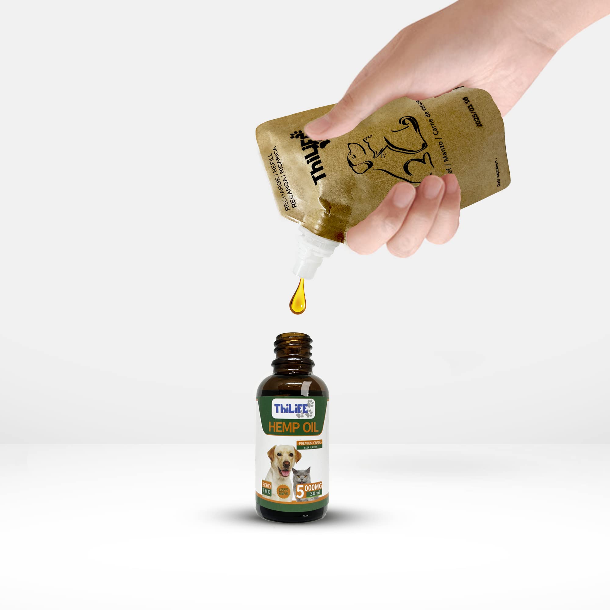 [Formulated for Optimal Quality] - Our high-quality hemp oil is formulated to adapt to your pet's needs. Well tolerated at recommended doses, an overdose can however cause temporary digestive disturbances, such as diarrhea (in this case, reduce the dosage for a few days), or strain the liver, especially in sensitive animals or those undergoing treatment. If you have any questions, do not hesitate to consult your veterinarian. [Superior Hemp Oil]: More beneficial than fish oils, our oil helps protect against stress and hyperactivity. Promotes peace of mind and long-term well-being. [Skin Care]: Reduces hair loss and itching, making the coat dense and shiny. Can be applied directly to the skin with a light massage. [Multivitamins A B1 B2 D3 E and Omega 3 6 9]: Essential for growth, immune function, and skin and coat health. Simple administration with a few drops in the food or in the animal's mouth. [Reduces pain and inflammation]: A natural anti-inflammatory, our oil relieves joint pain and digestive problems in non-diabetic dogs and cats of all sizes and ages. [100 Natural Anti-Stress]: Our oil helps relieve stress and anxiety for pets alone at home, during vet visits, car trips, and more. Effectively reduces excessive barking and meowing.[Formulée pour une qualité optimale] - Notre huile de chanvre, de haute qualité, est formulée pour s'adapter aux besoins de votre animal. Bien tolérée aux doses recommandées, un surdosage peut cependant provoquer des troubles digestifs temporaires, comme la diarrhée (dans ce cas, réduire le dosage pendant quelques jours), ou solliciter le foie, notamment chez les animaux sensibles ou sous traitement. Pour toute question, n'hésitez pas à consulter votre vétérinaire. [Huile de chanvre supérieure]: Plus bénéfique que les huiles de poisson, notre huile aide à protéger contre le stress et l'hyperactivité. Favorise la tranquillité d'esprit et le bien-être sur le long terme. [Soin de la peau]: Diminue la chute de poils et les démangeaisons, rendant le pelage dense et brillant. Peut s'appliquer directement sur la peau par léger massage. [Multivitamines A B1 B2 D3 E et Oméga 3 6 9]: Essentielles pour la croissance, les fonctions immunitaires et la santé de la peau et du pelage. Administration simple avec quelques gouttes dans la nourriture ou dans la bouche de l'animal. [Réduit douleurs et inflammations]: Anti-inflammatoire naturel, notre huile soulage douleurs articulaires et problèmes digestifs chez chiens et chats de toutes tailles et âges non diabétiques. [Anti-stress 100 naturel]: Notre huile aide à soulager le stress et l'anxiété des animaux seuls à la maison, lors de visites vétérinaires, de voyages en voiture, et plus. Réduit efficacement les aboiements et miaulements excessifs.