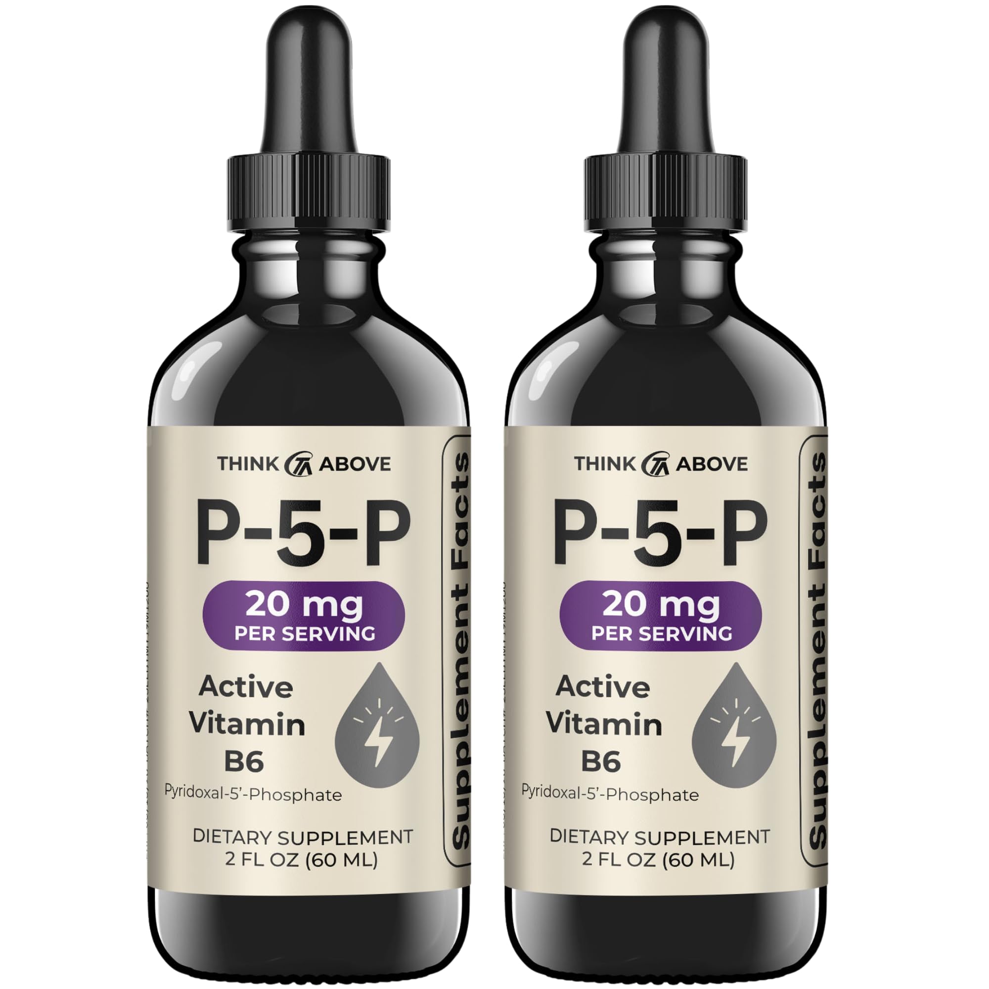 Think Above P5P Liquid Drops Activated Vitamin B6 (Pyridoxal-5-Phosphate) Fast Absorption Formula 2 oz (60 mL) Pack of 2