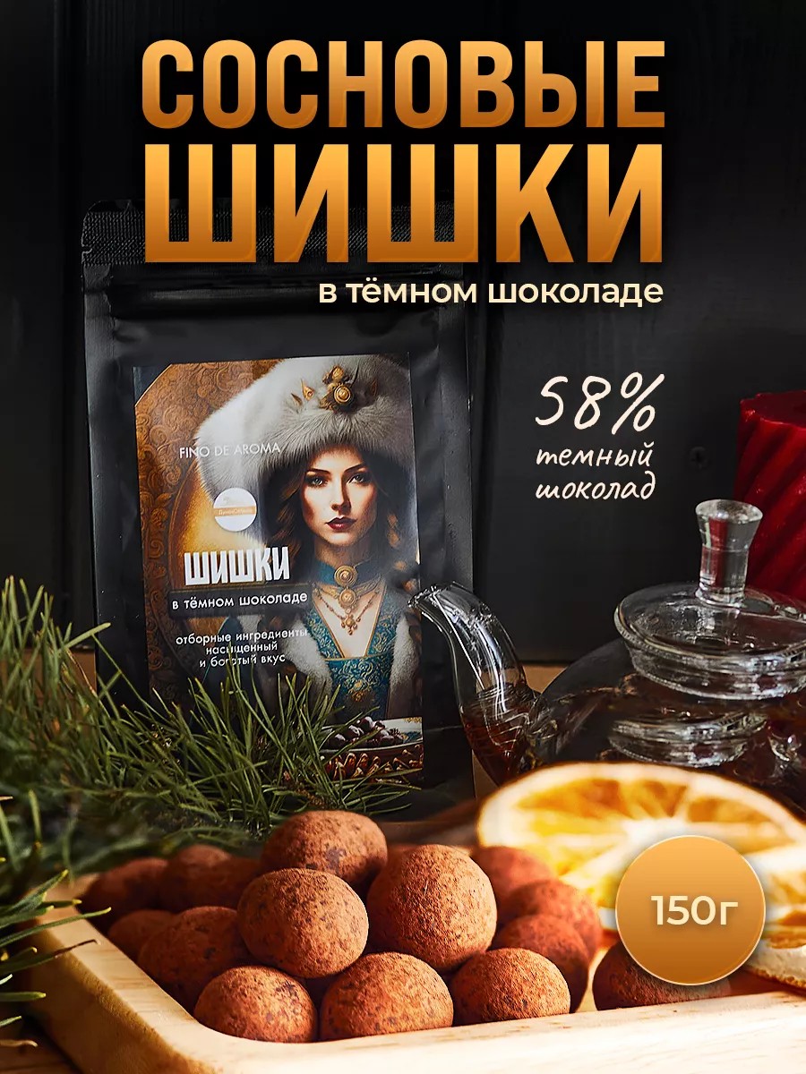 Dark chocolate-covered pine cones "ThinkingOfADream" are an exquisite delicacy that perfectly combines the delicate aroma of pine cones and the rich taste of high-quality dark chocolate.