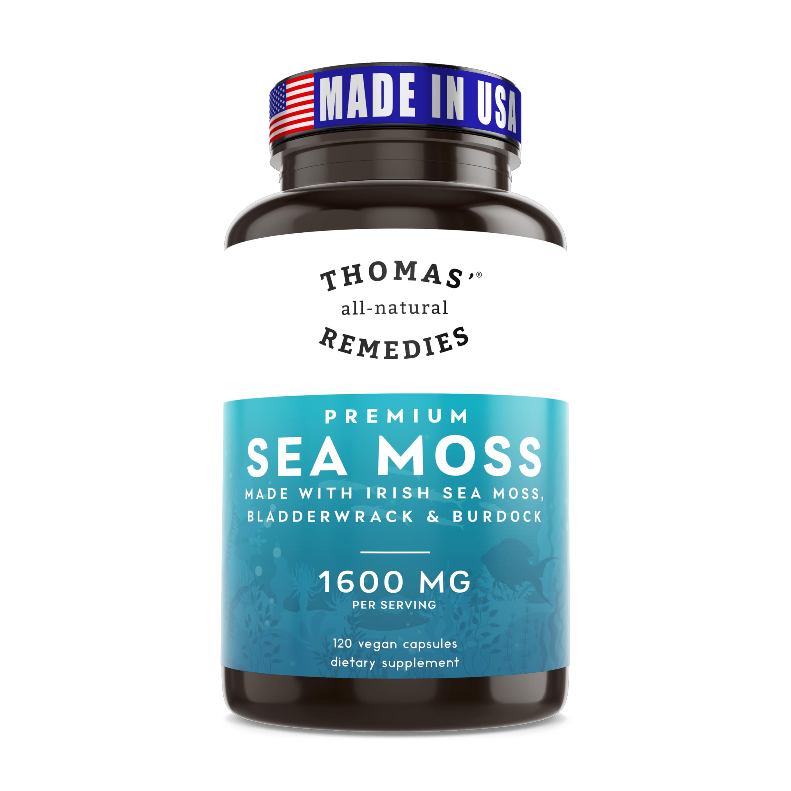 Thomas' all-natural Remedies Irish Sea Moss Capsules Sea Moss with Bladderwrack & Burdock Root Organic for Gut Health Digestion Energy & Immune Support 120 Seamoss Pills