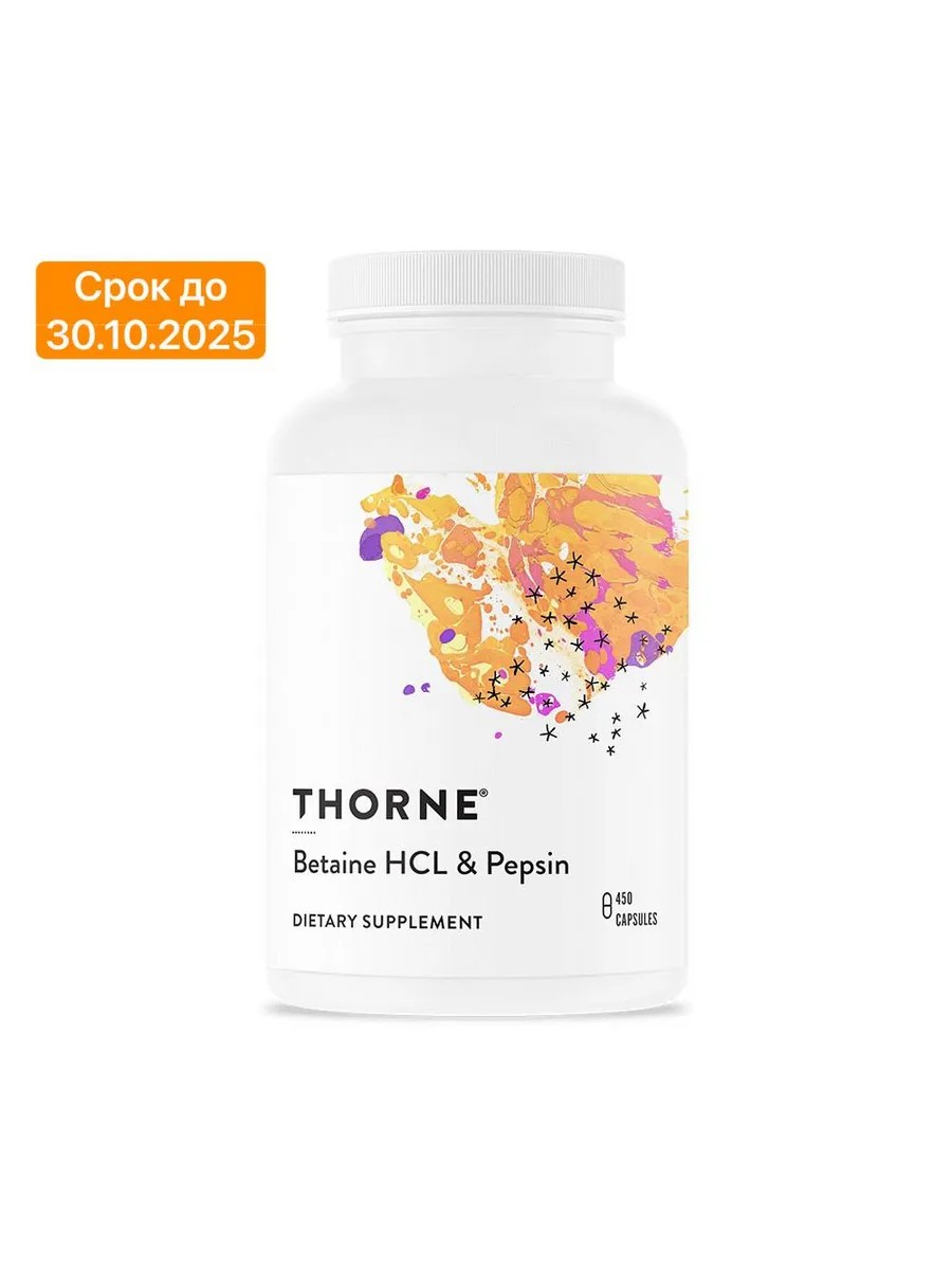 Thorne Research Бетаингидрохлорид и пепсин, Betaine HCL Pepsin 450кап СРОК!