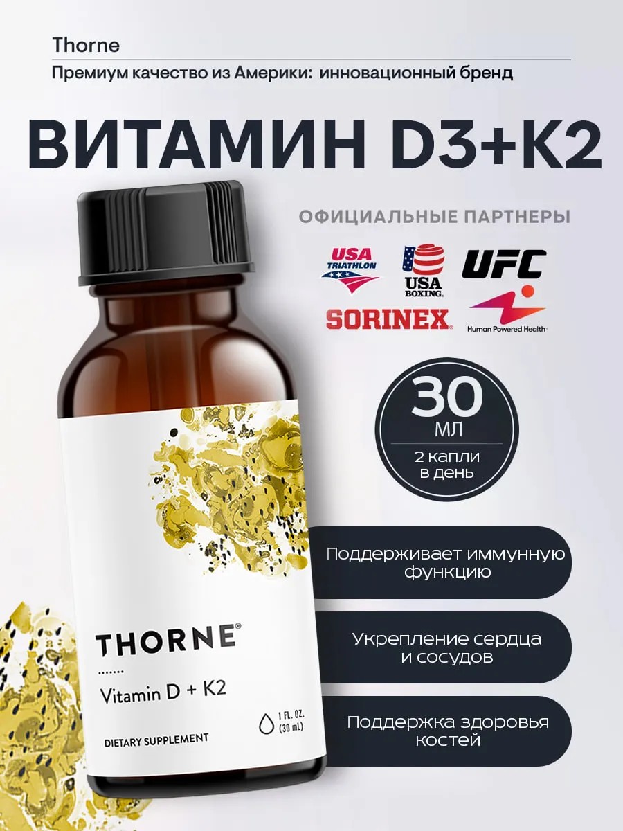 Thorne Research Жидкий витамин Д3К2 для взрослых и детей, 30 мл