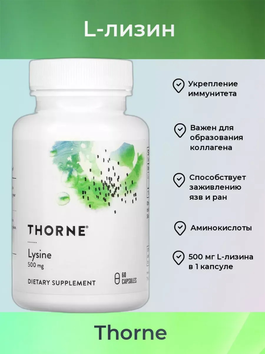 Пищевая добавка Лизин 500мг от компании Thorne для укрепления иммунитета.