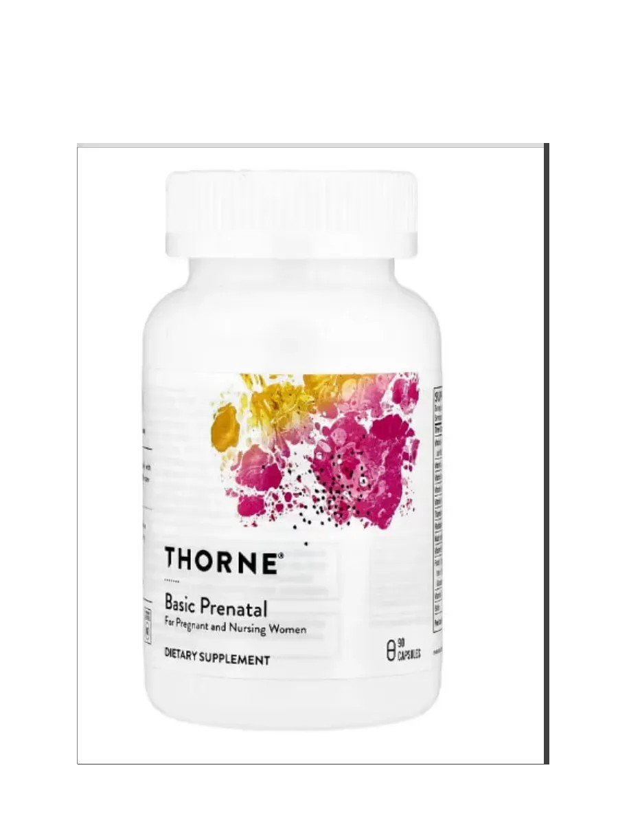 Basic Prenatal Multivitamin, 90 capsules, is a gentle and effective supplement specially formulated for women planning a pregnancy, during pregnancy, and while breastfeeding. This complex does not contain excipients often found in other prenatal dietary supplements. Taking multivitamins and micronutrients before conception, during pregnancy, and after childbirth can promote the birth of a healthy baby and provide benefits to the mother. For example, folic acid plays an important role in reducing the risk of birth defects of the brain or spinal cord in newborns. Thorne's Basic Prenatal contains active forms of folic acid (5-MTHF) and vitamin B12 (methylcobalamin), which ensures their optimal absorption by body tissues. Pregnancy is an important period for improving a woman's health; this is when the need for nutrients and calories increases for both the mother and her unborn child. It's important to note the presence of choline, which supports fetal brain development. Each capsule contains a carefully selected vitamin complex: vitamin A promotes normal vision development; B vitamins support energy metabolism; vitamin D is essential for bone formation; and other vital elements.