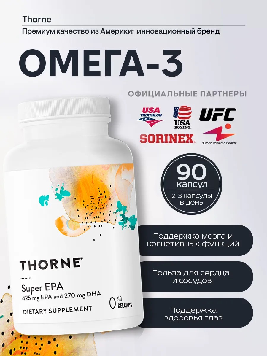 Thorne Research Омега-3 из рыбьего жира, Omega 3 Super EPA, 90 капсул