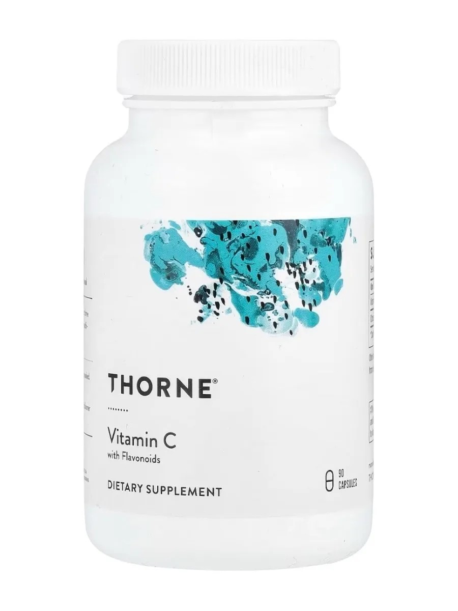 Витамин С с флавоноидами от Thorne содержит аскорбиновую кислоту и цитрусовые флавоноиды природного происхождения. Сочетание флавоноидов и витамина С обладает большей антиоксидантной способностью, а значит, лучше нейтрализует свободные радикалы в организме, чем просто витамин С.