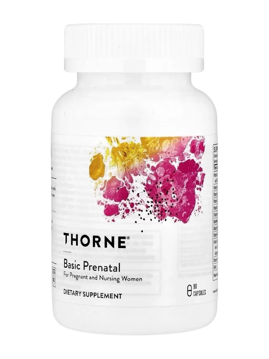 Прием добавки с мультивитаминами и микроэлементами до, во время и после беременности, а также в период грудного вскармливания может помочь родить здорового ребенка и принести пользу матери. Например, прием фолиевой кислоты снижает риск рождения ребенка с врожденным дефектом головного или спинного мозга. Basic Prenatal от Thorne's содержит активные формы фолиевой кислоты (5-MTHF) и витамина B12 (метилкобаламин) для оптимального использования в тканях. Кроме того, Basic Prenatal содержит хорошо усваиваемый бисглицинат железа, который удовлетворяет повышенную потребность беременных женщин в железе, но при этом не вызывает запоров. Как показали исследования, некоторые из ингредиентов Basic Prenatal (включая витамин C, витамин B6 и витамин K) могут облегчать "утренние недомогания".