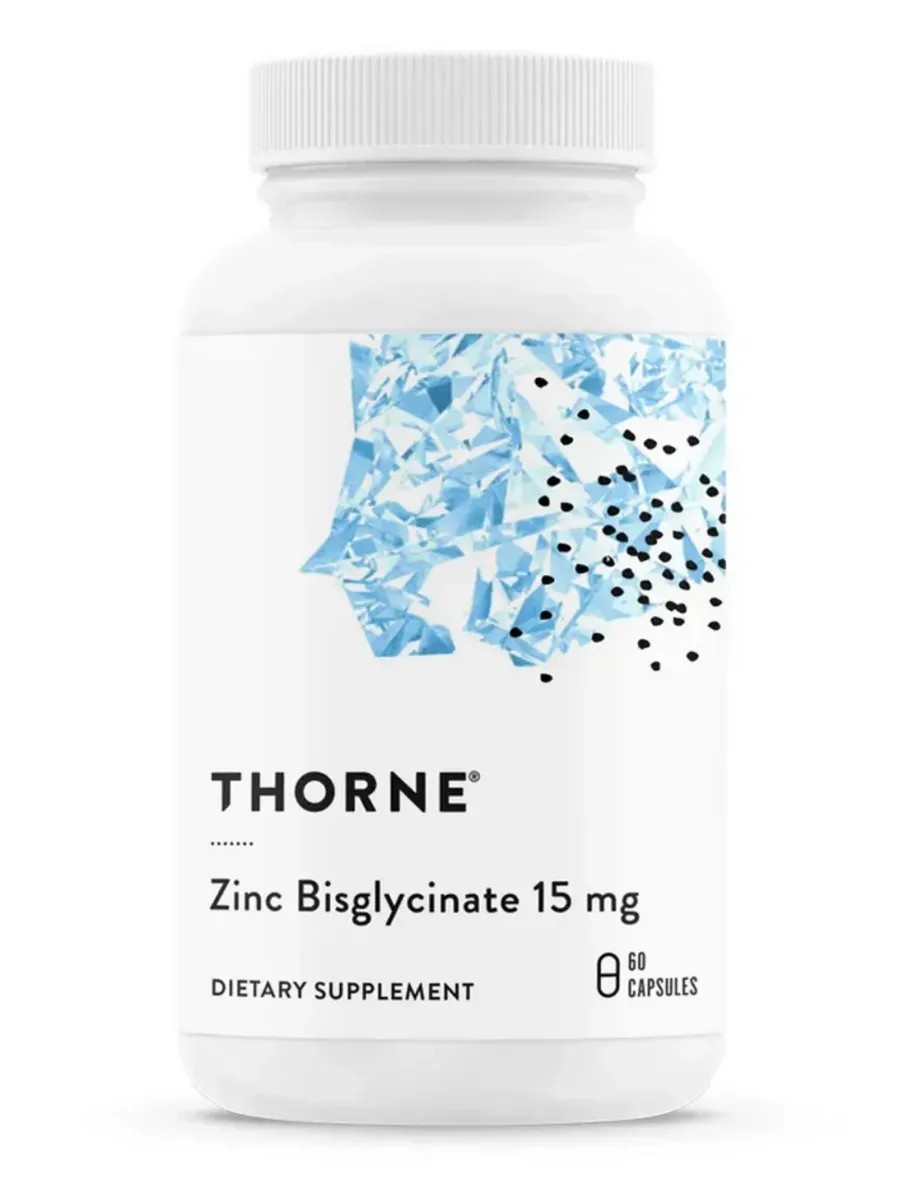 Thorne Research Zinc Bisglycinate 15 mg is a high-quality dietary supplement designed to support overall health and well-being.