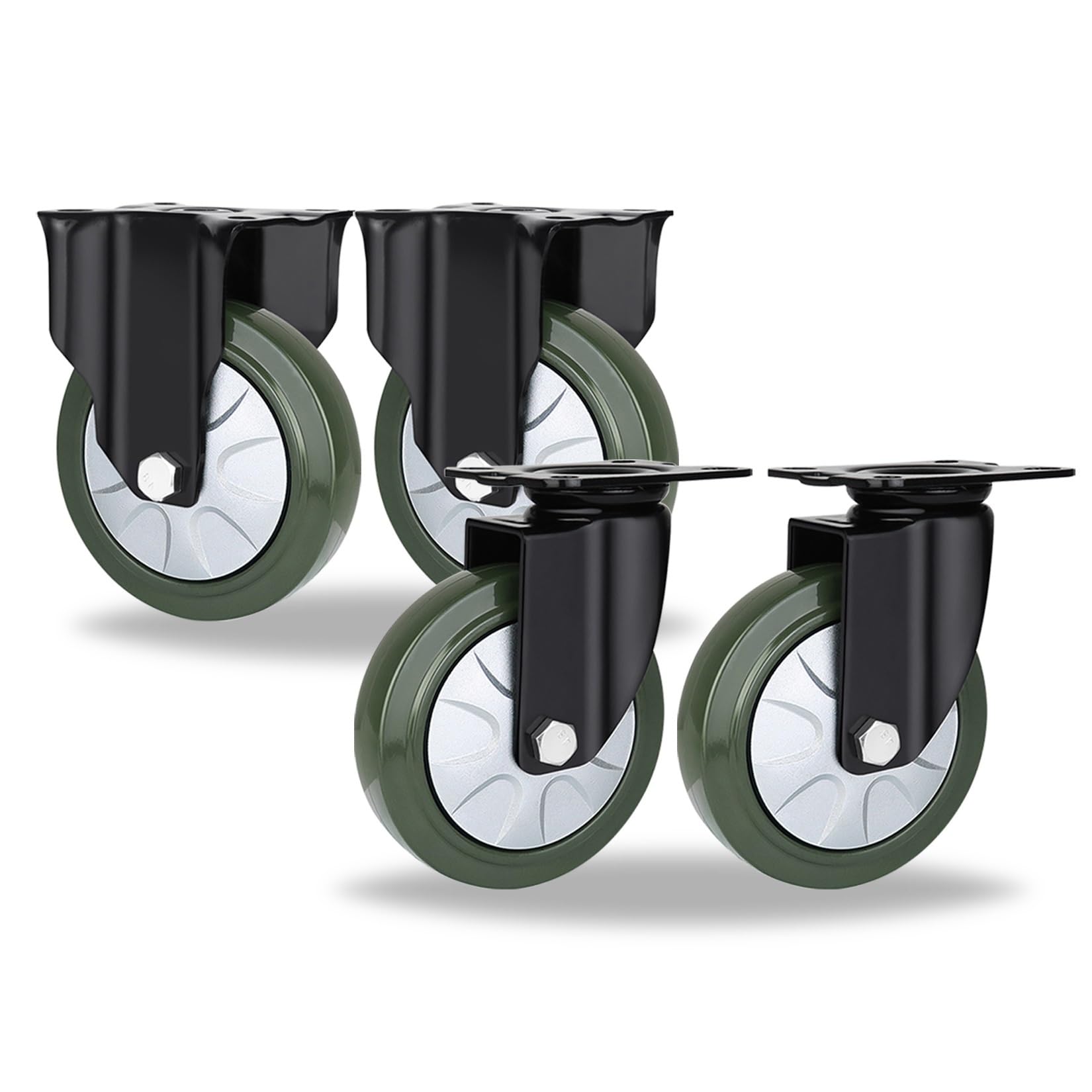 Heavy duty furniture mobile casters, silent solid rubber casters, 360 swivel industrial casters, cart replacement casters, can be used for indoor and outdoor road use, 4-piece set, 75 100 125 150mm wheel diameter, fixed swivel brake three types of - Name: heavy duty rubber casters - Material: rubber steel - Type: fixed casters swivel casters brake casters - Usage: carts, tool boxes, light machinery, equipment carriers, mobile workstations, cabinets, furniture and so on. Caster Size - Wheel Diameter: 75mm 100mm 125mm 150mm - Mounting Height: 110mm 138mm 164mm 190mm - Wheel width: 38mm - Bracket thickness: 4mm Mounting plate size - 75mm 100mm caster top plate size: 82mm × 101mm - 75mm 100mm caster mounting hole spacing: 60mm × 80mm - 125mm 150mm caster top plate size: 100mm × 113mm - 125mm 150mm caster mounting hole spacing: 70mm × 85mm Load capacity per wheel: 75kg 110kg 150kg 185kg Package content: 4 pcs set of heavy duty casters Attention. - Due to the shooting angle, light, monitor or other reasons, the product color may be different from the photo. Please prevail in kind. -USE FOR MULTIPLE USES: These castor wheels are perfect for so many different uses. Use them for industrial shelving, storage units, toolboxes and work saw benches. You can use them around the home for furniture such as kitchen islands, desks, ottomans, toy shoe bins, outdoor planters, shelves, coffee tables, chairs, and cabinets. Additionally, use them for display exhibition equipment, flight instrument cases, dollies, speakers, and many different types of machinery equipment. Applications: casters can be used for carts, carts, DIY, furniture, workbenches, cabinets, shelves, storage boxes, machinery equipment and so on. Ideal for use in logistics, warehouses, farms, hospitals, homes and other transportation platforms. Materials:Heavy duty casters are made of solid rubber wheels and 4mm thick electrophoresis process steel plate, which are sturdy and durable, move quietly, shock absorption and antis-skid, strong load-bearing capacity, don't hurt the floor and don't leave tire marks. Excellent wear resistance, cushioning, antis-puncture ability. Swivel: rubber caster top plate built-in double-layer solid steel ball wheel built-in double 6002 type ball bearings, in the rolling process to effectively reduce the wear and tear brought about by the rotation, at the same time, in the state of loaded can also be flexible and smooth steering. Detailed: package content: casters 4-piece set wheel diameter: 75 100 125 150mm wheel width: 38mm mounting height: 110 138 164 190mm top plate size: 82×101 100×113mm mounting hole distance: 60×80 70×85mm.
