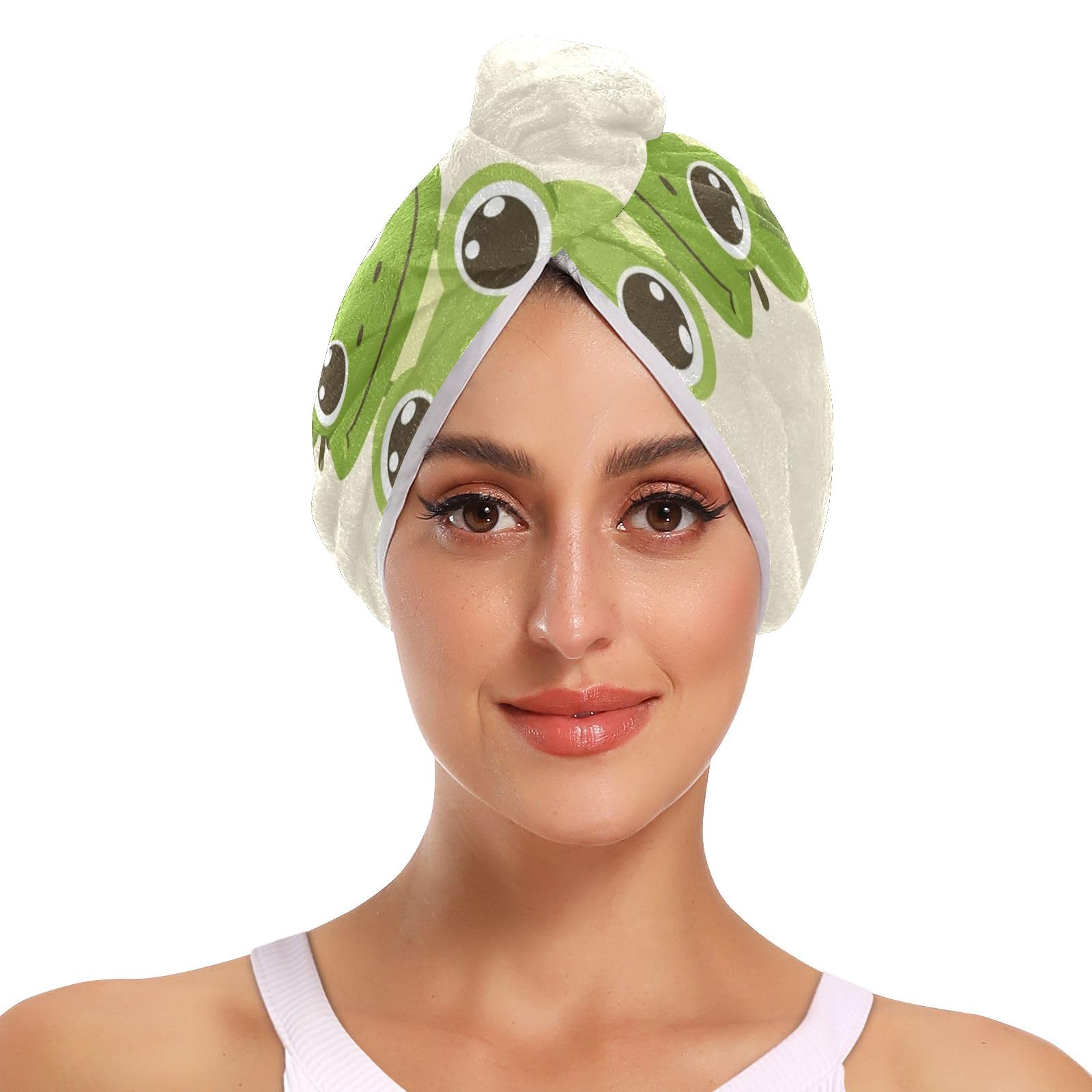 Three Green Frogs Hair Towel 2 Pack Super Absorbent Hair Drying Towel Quick Dry Hair Turbans Head Towel with Button Twisty Wrap for Women Girls